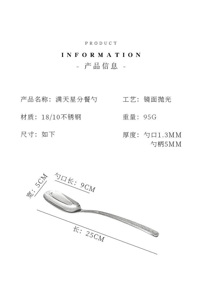 | Especificaciones | Cuchara de mango de acero inoxidable |