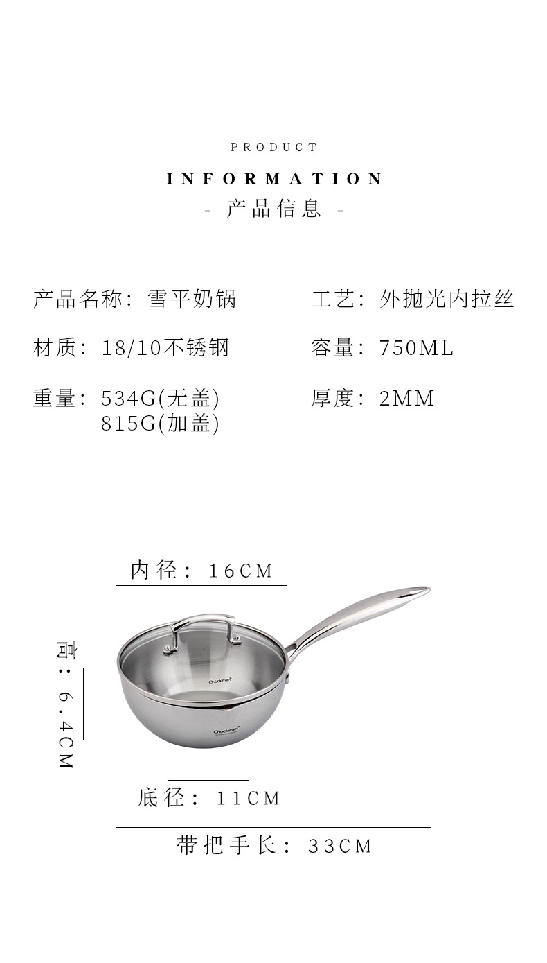 Chockmen Zhuo Deming 18 / 10 un solo mango de acero inoxidable grueso 16cm pequeño pan de leche de panela de fideos hervir gachas de leche