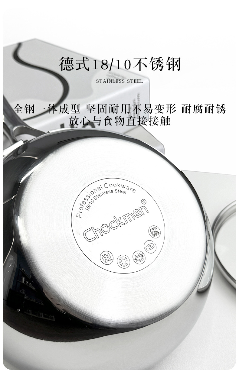 COOKONE18 / 10 acero inoxidable estilo alemán de acero grueso de cinco capas de leche de leche caliente para fideos hervidos de un solo mango sin recoger la estufa