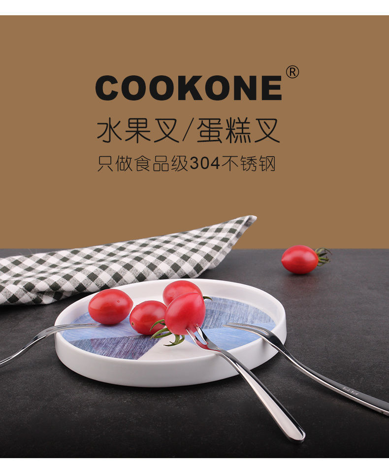 COOKONE18 / 10 acero inoxidable engrosado fruta postre horquilla horquilla casera horquilla horquilla horquilla horquilla de té de la tarde dos dientes