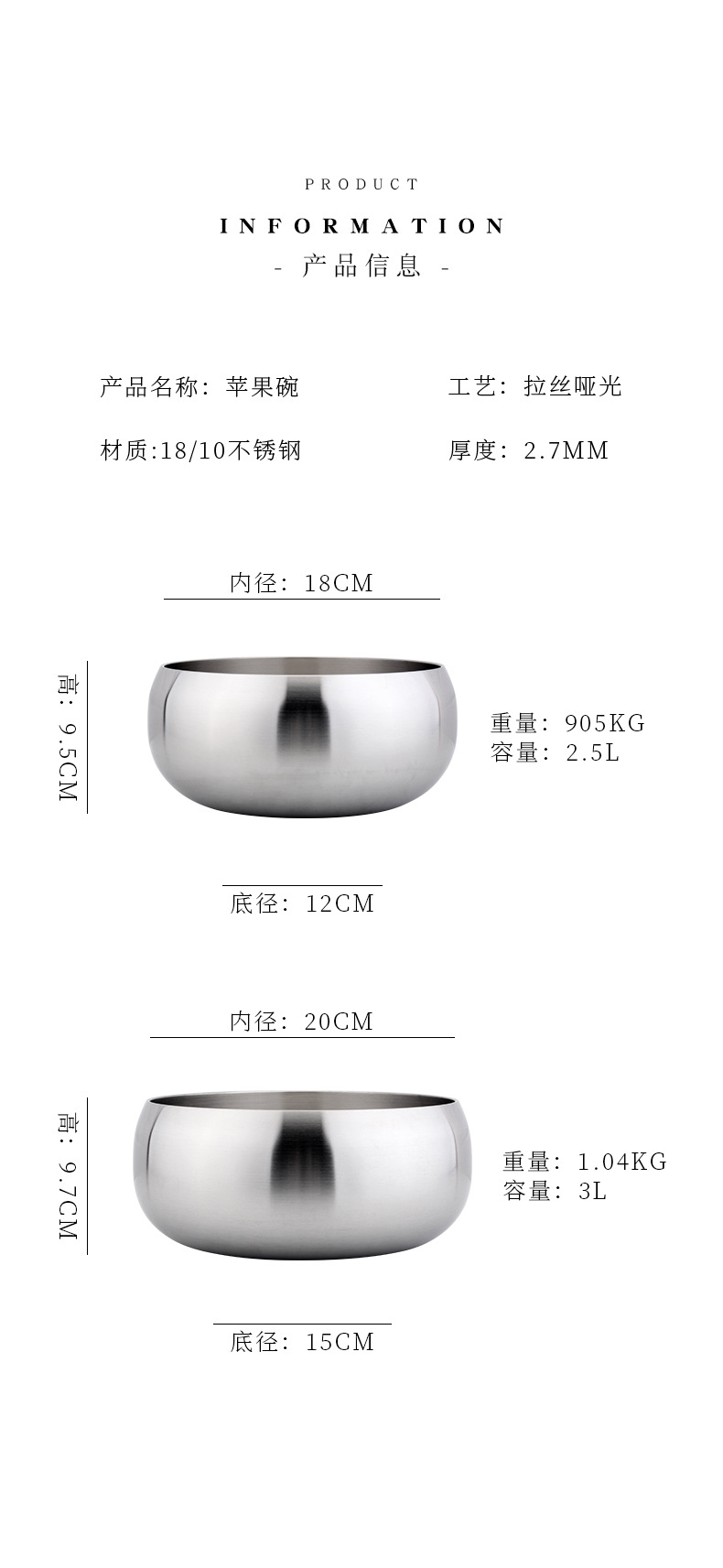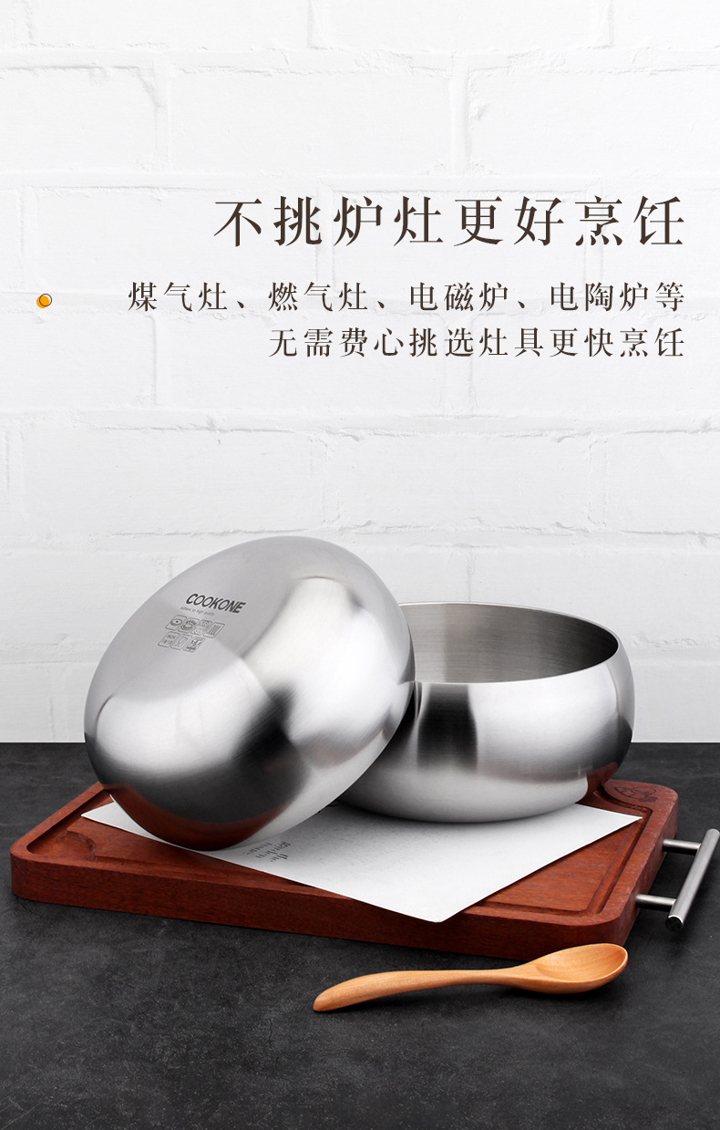 18 / 10 acero inoxidable de tres capas de acero manzana sopa tazón de sopa tazón de fideos se puede calentar a fuego abierto sin escoger la preparación de la estufa y fideos