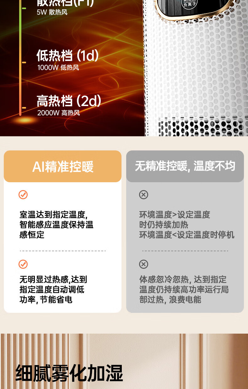 | Color | Modelo de control remoto de voz de AI blanca [3 ajuste de temperatura + agitación de cabeza], modelo de humidificación de voz de AI blanco [humidificación + iones negativos], modelo mecánico blanco [grafeno + 3 ajuste de temperatura + agitación de cabeza], modelo de humidificación de voz de AI blanco [grafeno + humidificación + iones negativos], modelo mecánico alto [3 ajuste], modelo de temporización de control remoto alto [3 ajuste de temperatura + 24H temporización], modelo de control remoto [3 ajuste de temperatura + 24H temporización] |
