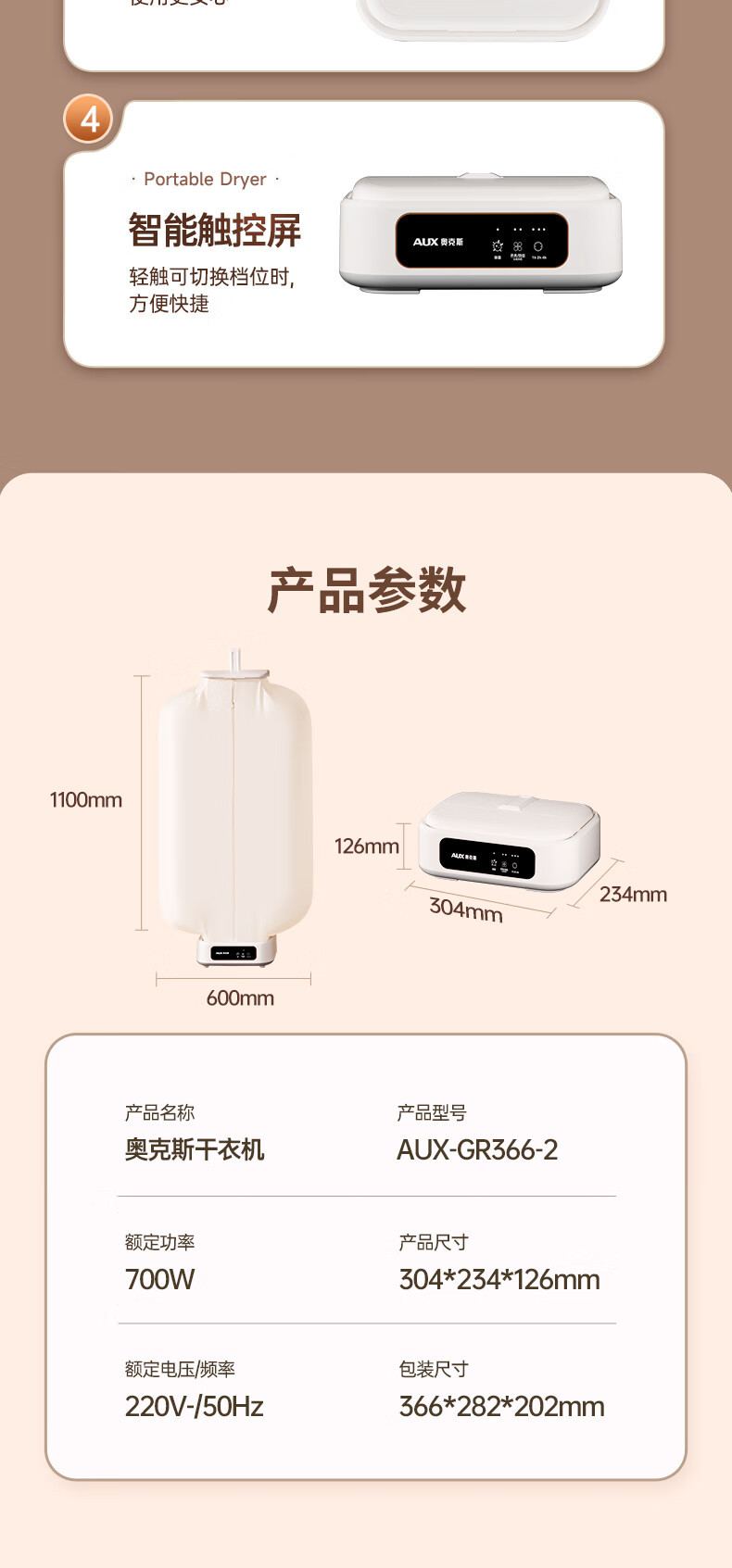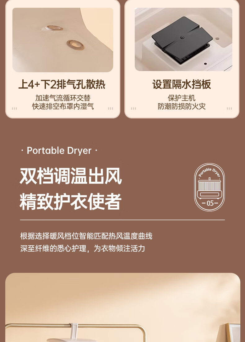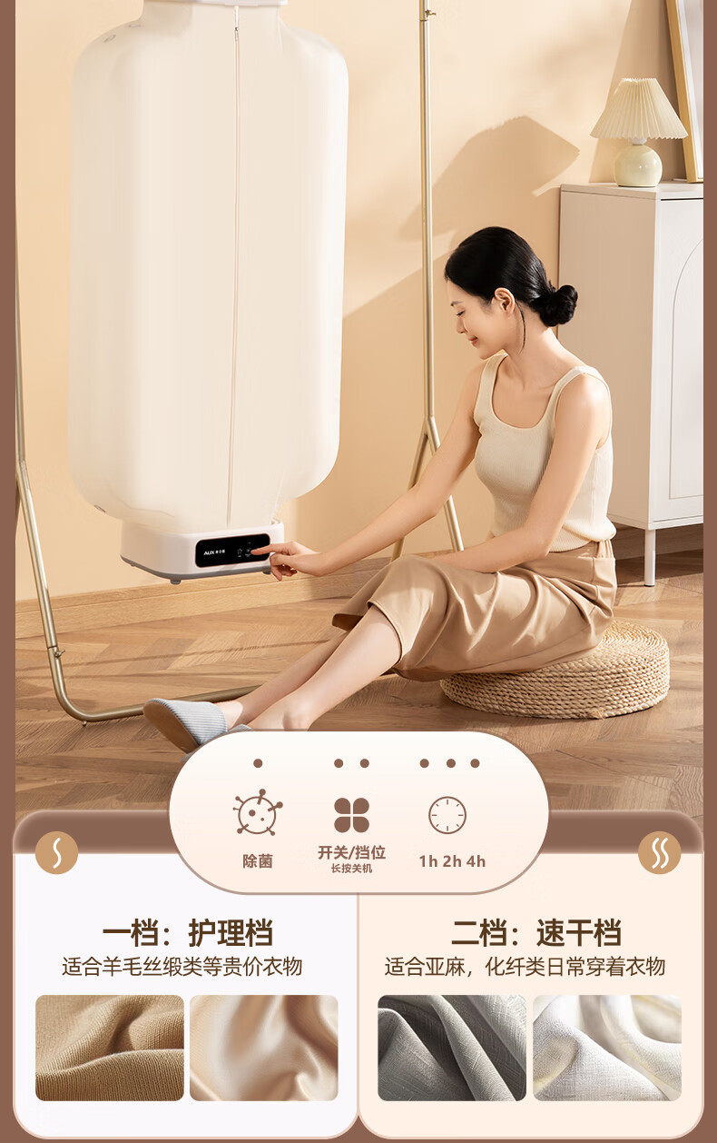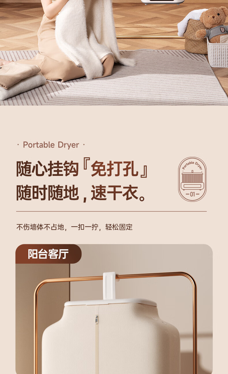 La secadora de ropa doméstica Jinzheng es una máquina inteligente, práctica, de secado rápido, pequeña, plegable y almacenable para desinfectar y secar la ropa de bebé.