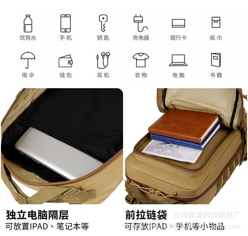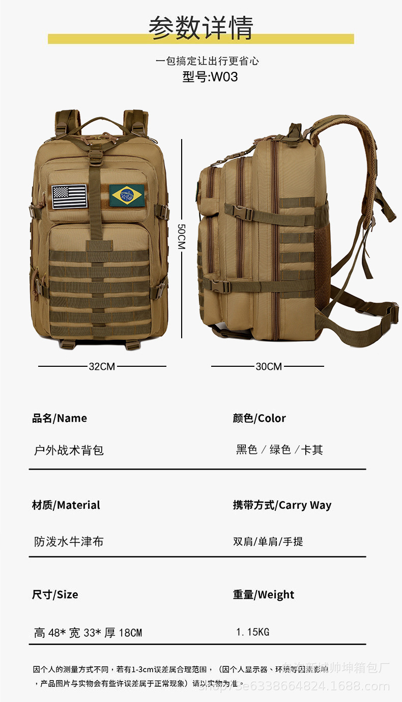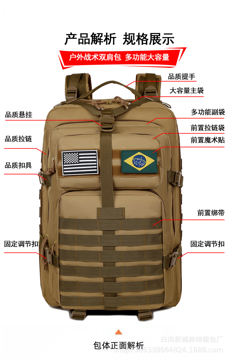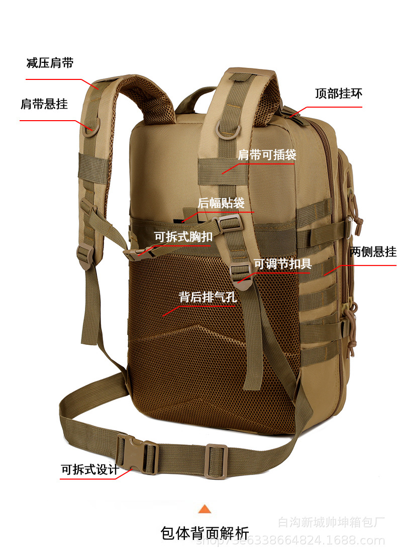 Mochila táctica de ataque mayorista de gran capacidad de campamento equipo de senderismo mochila al aire libre paquete de montaña tácticas de camuflaje militares