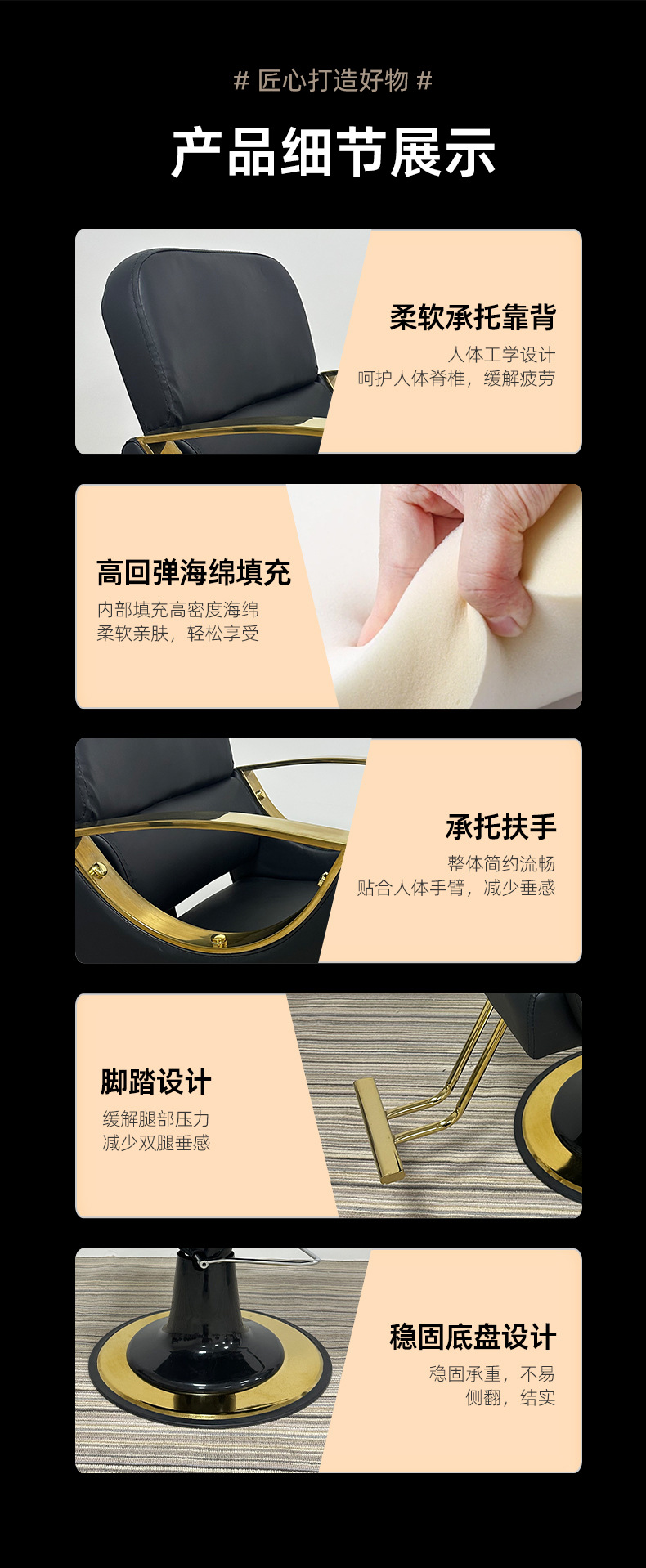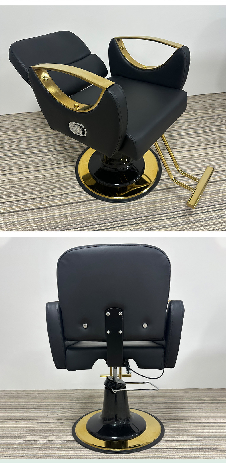 Silla de peluquero dorada de comercio exterior, silla de barbería de acero inoxidable, cómoda silla de peluquería, silla giratoria de aseo, nuevo producto, silla de peluquería