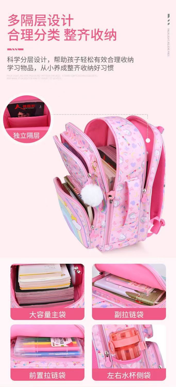 Mochila de reducción de carga suspendida Mochila de estudiante de primaria súper linda Universal 3-6 grados Resistente a la suciedad y a la caída de niños y niñas