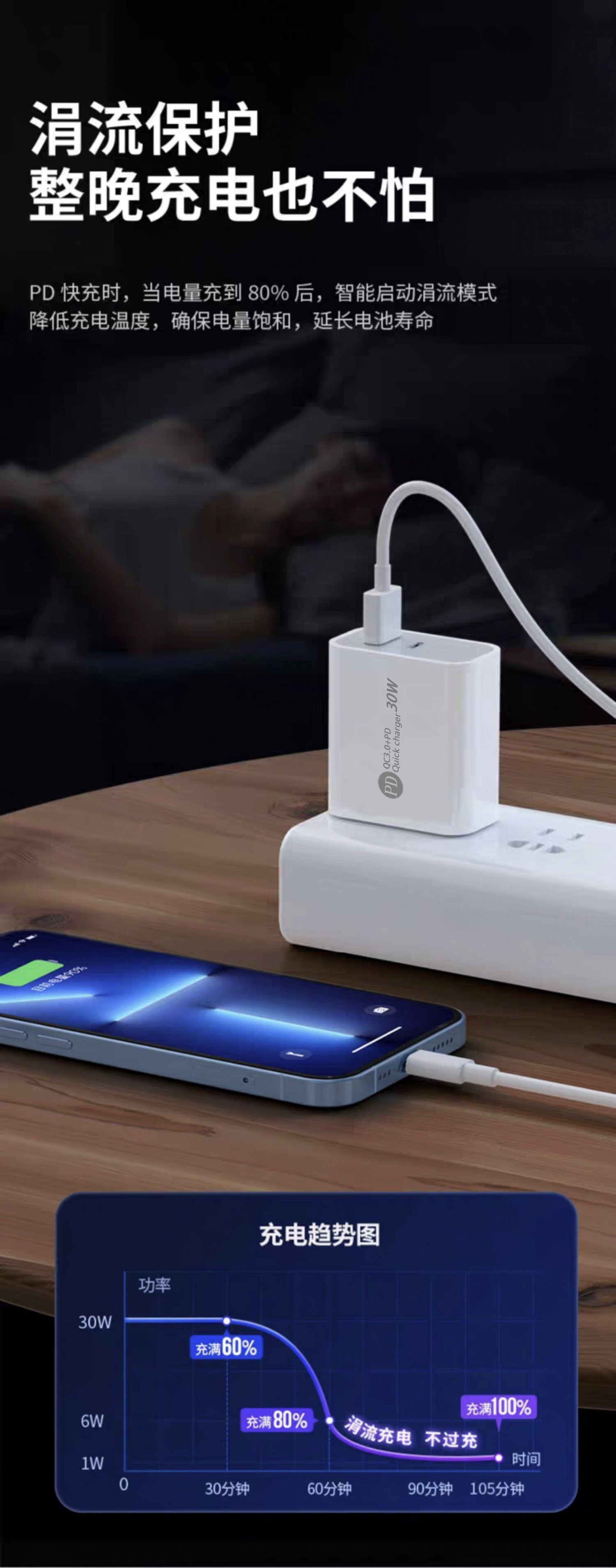 PD30W充电器适用苹果15手机充电头双口usb+typec苹果14充电器快充