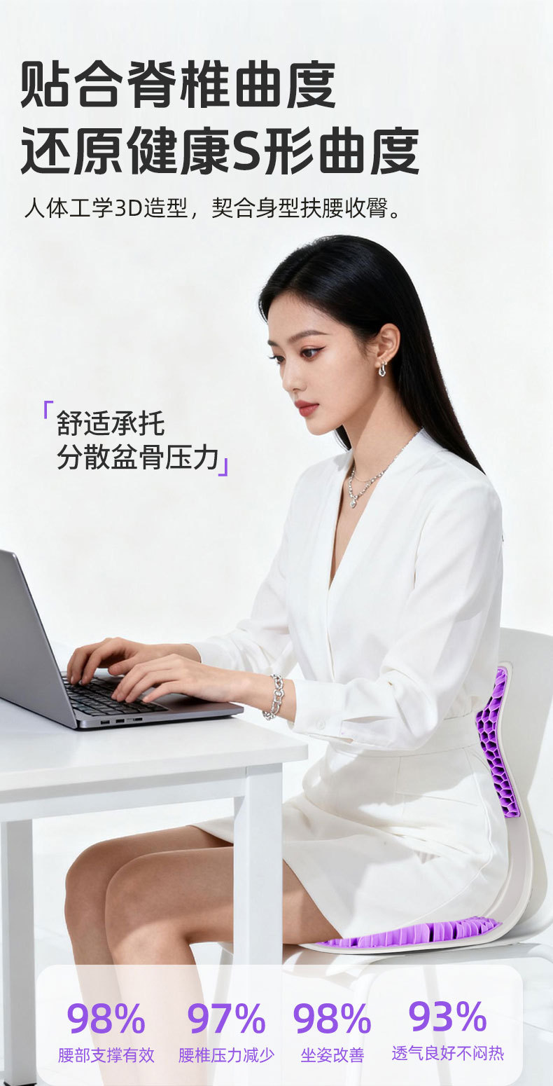 Cojín para silla y respaldo integrados para oficina, para estar sentado durante mucho tiempo, cómodo cojín de soporte lumbar para estudiantes, cojín transpirable para corrección de postura anti-joroba.