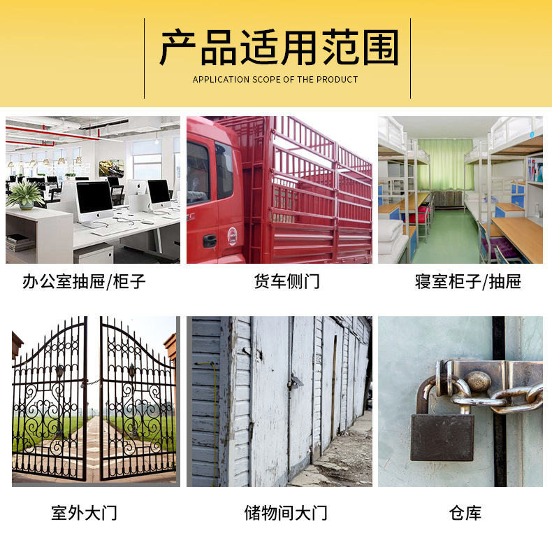 | ámbito de aplicación | Puerta del dormitorio Puerta del gabinete Puerta del almacén Supermercado Fábrica Sitio de construcción Lugar de oficina |