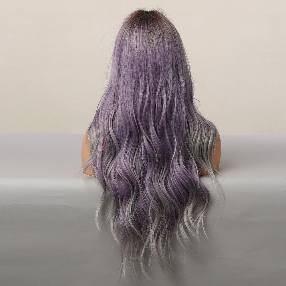| peinado de peluca | Cabello largo y rizado con raya media |