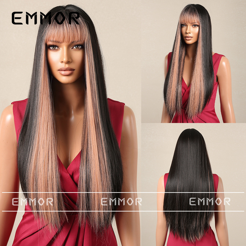 | peinado de peluca | Cabello largo y liso con flequillo. |