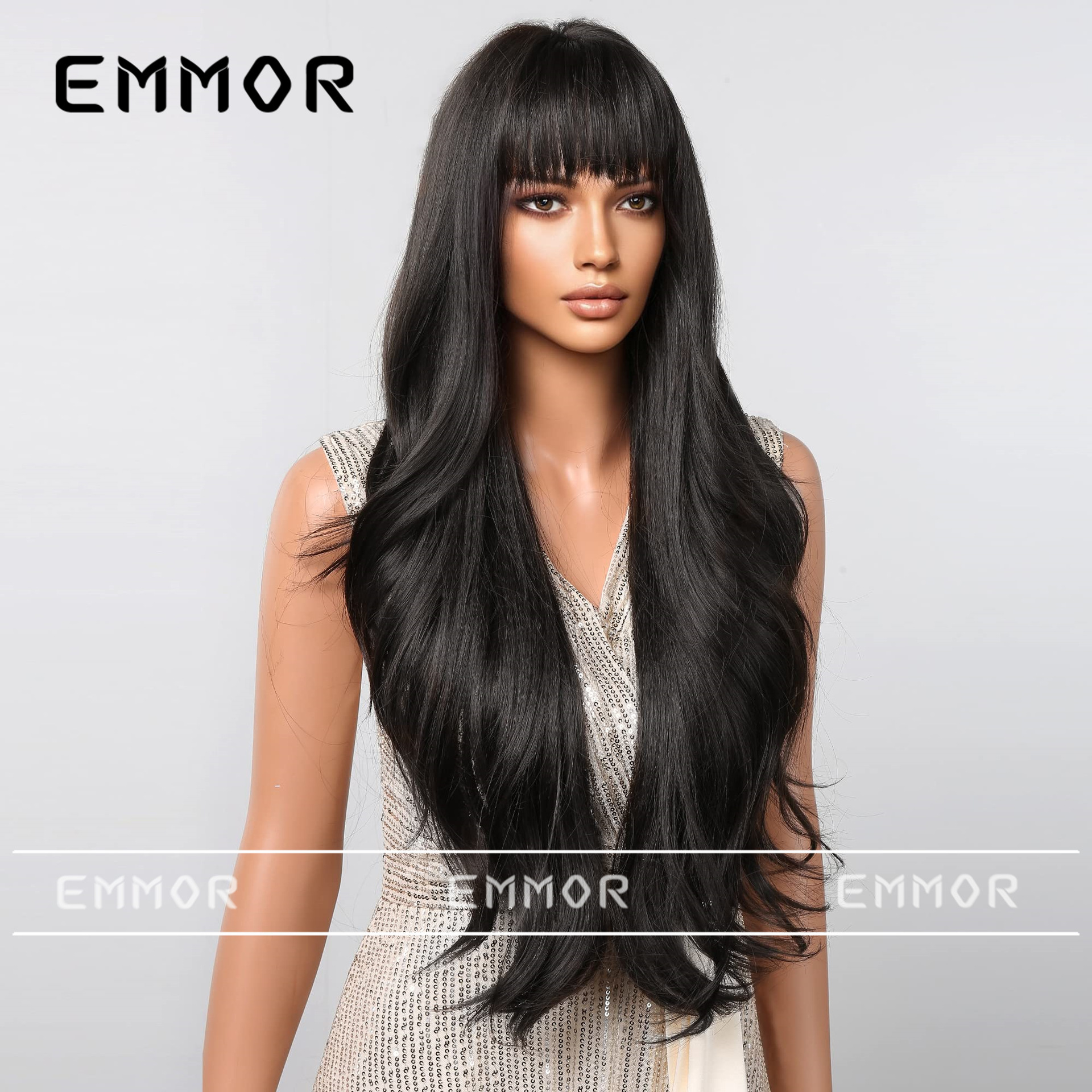 | Peluca peinado | Cabello largo y rizado con Bangs |