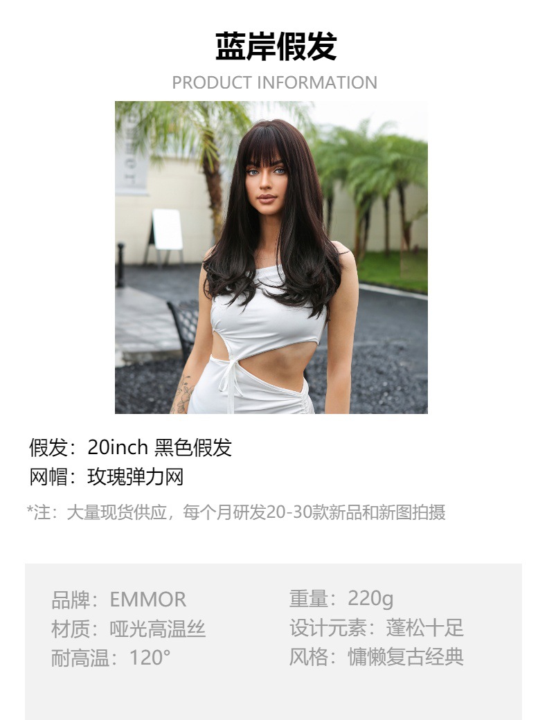 | Característica 2 | Peluca negra para mujer |