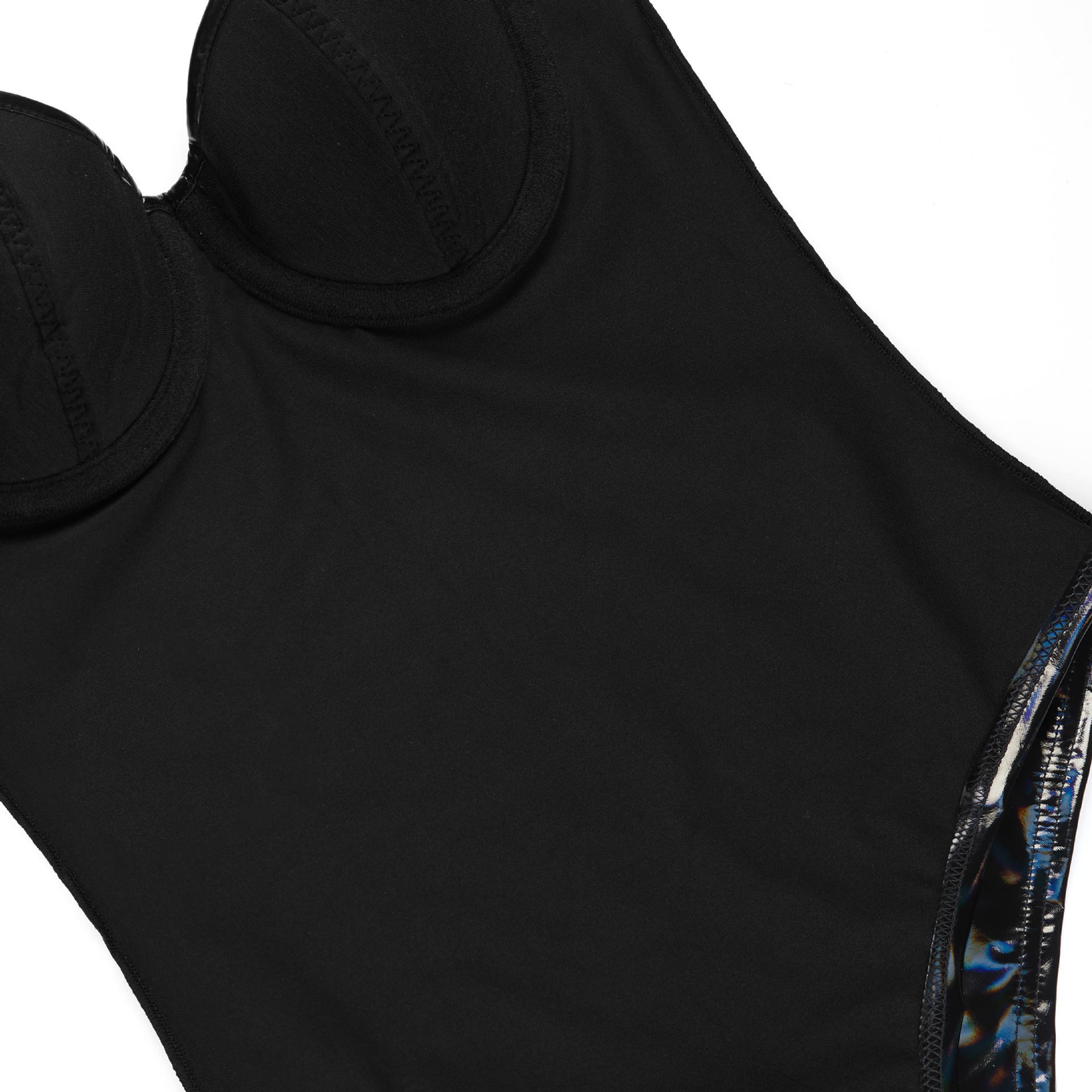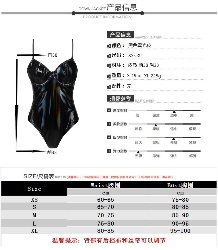Nuevo negro rayos de cuero PU correa de hombro delgada camiseta sexy cintura delgada con anillo de acero copa traje de baño se puede usar fuera
