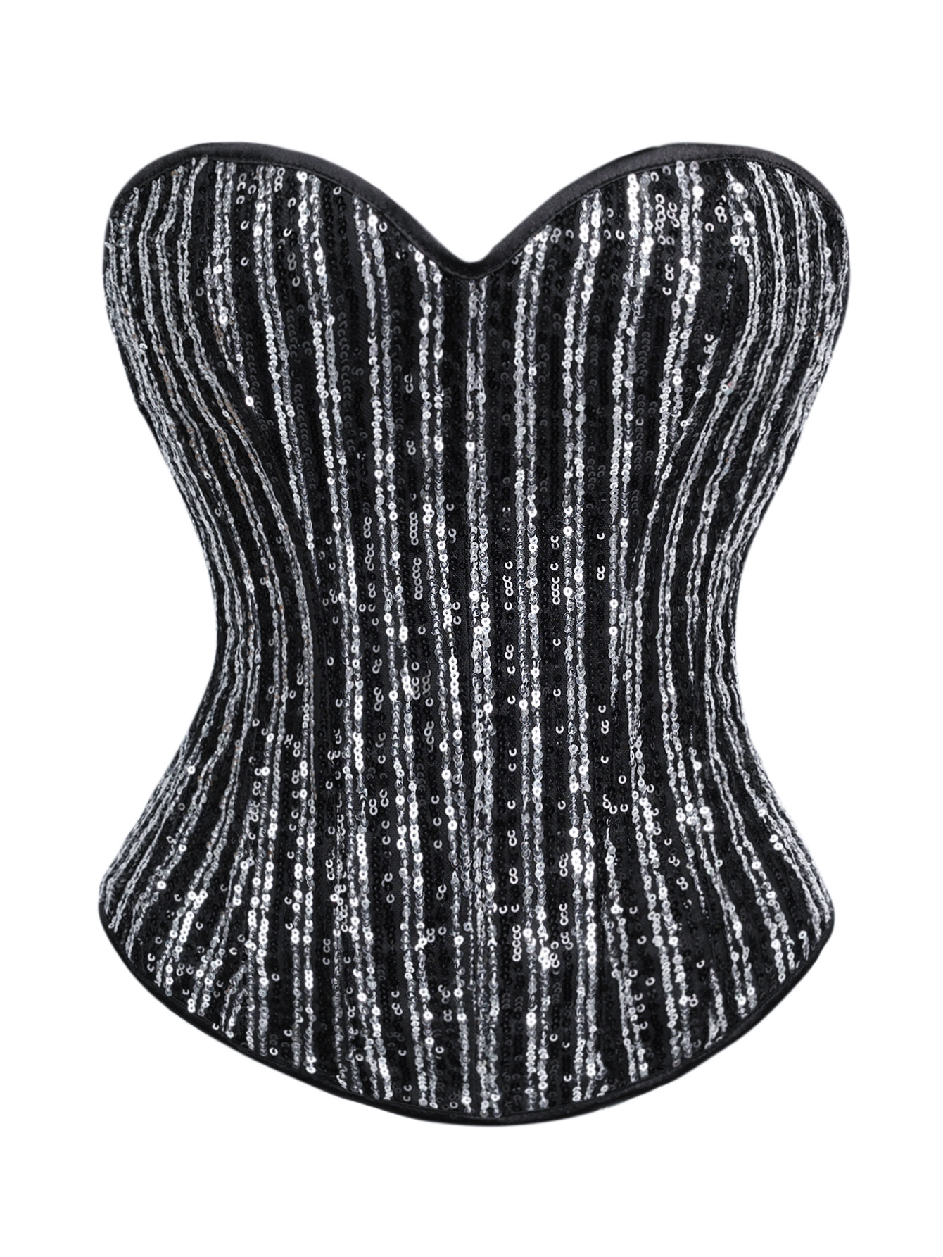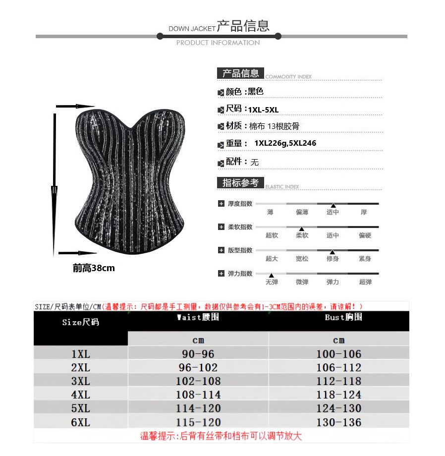 Gran tamaño nuevo chaqueta plateada y negra de forma de sequilla damas sopa de pecho de corte corset suministro de comercio electrónico transfronterizo