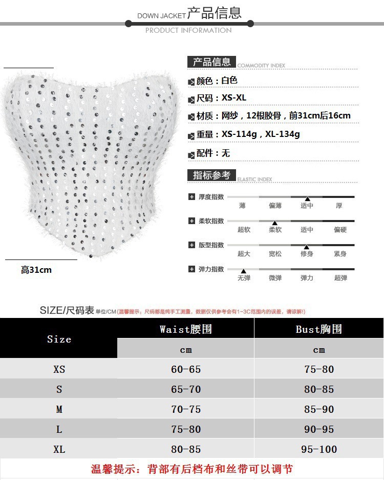 Gran tamaño nuevo chaqueta plateada y negra de forma de sequilla damas sopa de pecho de corte corset suministro de comercio electrónico transfronterizo