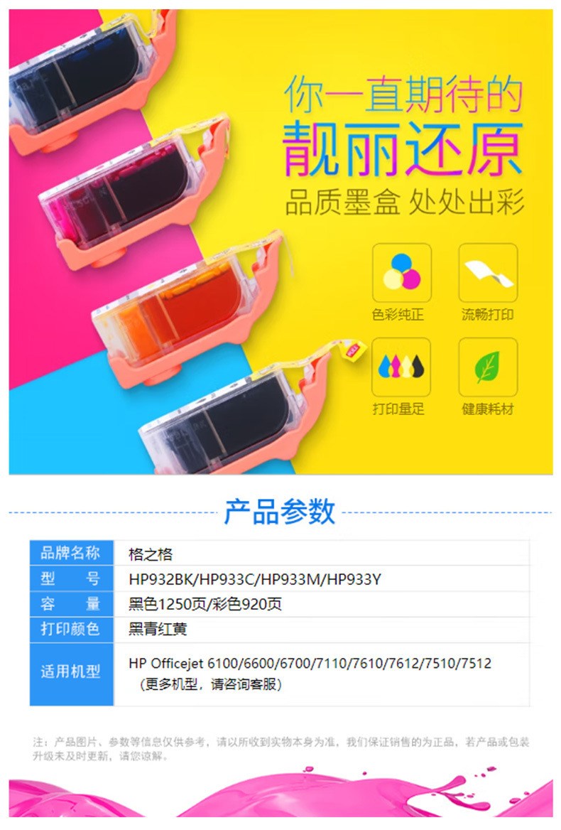 | Modelo de marca aplicable | 932XL 933XL cartucho de tinta para HP 6100 6700 7512 HP 7110 cartucho de tinta cuatro colores |