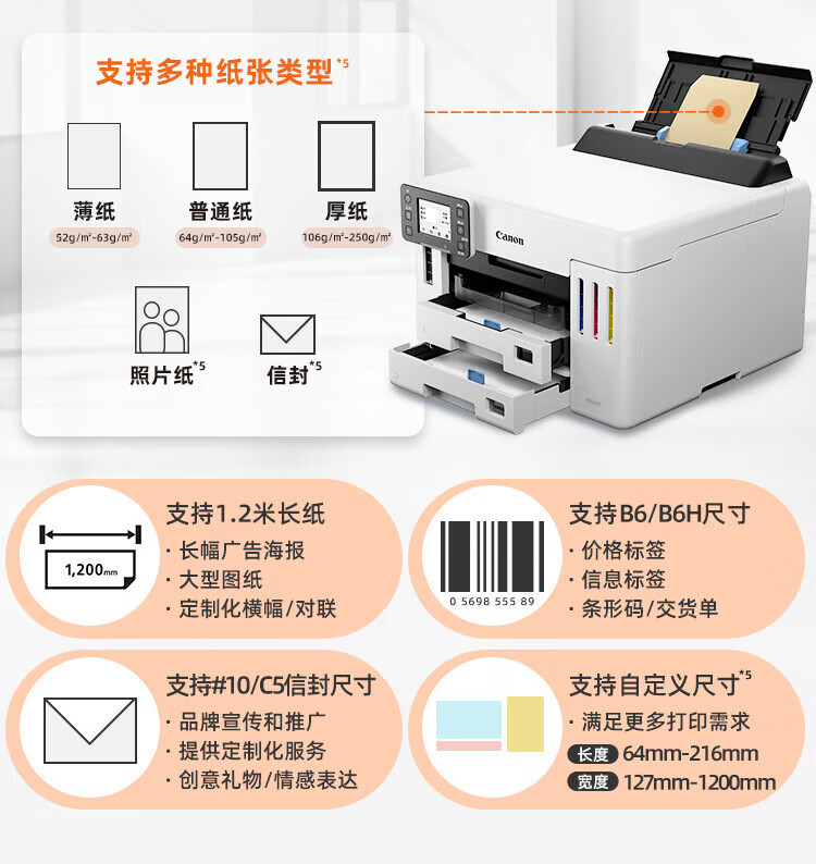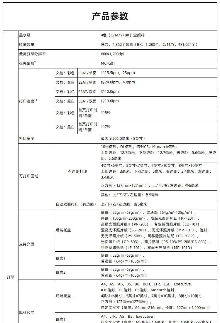 | Medios de impresión | Papel normal de inyección de tinta de alta calidad,Papel de inyección de tinta de calidad fotográfica,Papel normal,Papel fotográfico,Papel fotográfico brillante de alta calidad,Papel adhesivo de calidad fotográfica,Tarjeta de inyección de tinta de calidad fotográfica,Otros |