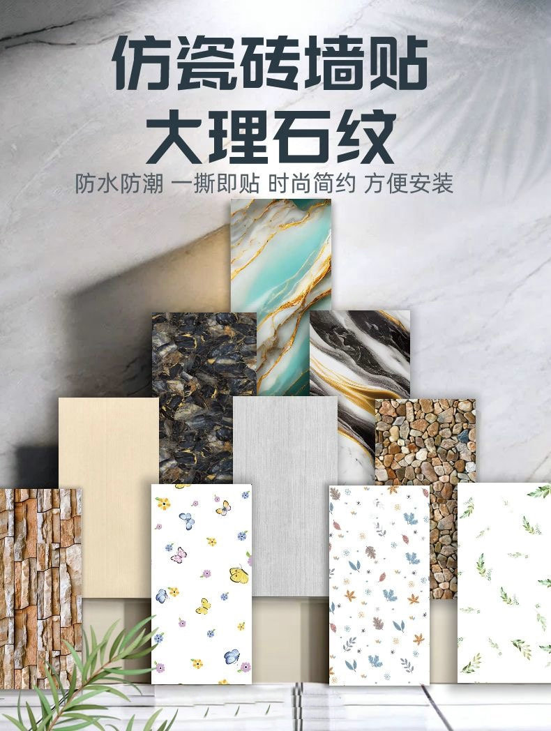 | Clasificación de colores | 亮白色【撕开即贴 防水防潮】,伯爵灰【撕开即贴 防水防潮】,黄冰玉【撕开即贴 防水防潮】,云朵灰【撕开即贴 防水防潮】,东方白【撕开即贴 防水防潮】,爵士黑【撕开即贴 防水防潮】,卡拉白【撕开即贴 防水防潮】,爵士白【撕开即贴 防水防潮】,金龙黑【撕开即贴 防水防潮】,深咖网【撕开即贴 防水防潮】,青石纹【撕开即贴 防水防潮】,兰帕斯金【撕开即贴 防水防潮】,黄金岩【撕开即贴 防水防潮】,石头纹【撕开即贴 防水防潮】,金线黄【撕开即贴 防水防潮】,红砖纹【撕开即贴 防水防潮】,流水生金【撕开即贴 防水防潮】,鎏金黑【撕开即贴 防水防潮】,金丝玉带【撕开即贴 防水防潮】,鎏金蓝【撕开即贴 防水防潮】,流沙金【撕开即贴 防水防潮】,大花白【撕开即贴 防水防潮】,水墨白【撕开即贴 防水防潮】,蓝色多瑙河【撕开即贴 防水防潮】,蓝色风暴【撕开即贴 防水防潮】,绿玉鎏金【撕开即贴 防水防潮】,鎏金翠【撕开即贴 防水防潮】,嵌金灰【撕开即贴 防水防潮】,大花金【撕开即贴 防水防潮】,嵌金白【撕开即贴 防水防潮】,金色年华【撕开即贴 防水防潮】,灰烬金【撕开即贴 防水防潮】,黑金石【撕开即贴 防水防潮】,辉金蓝【撕开即贴 防水防潮】,莫斯科砖【撕开即贴 防水防潮】,冰河世纪【撕开即贴 防水防潮】,蓝色妖姬【撕开即贴 防水防潮】,尊贵黑金【撕开即贴 防水防潮】,红木纹理【撕开即贴 防水防潮】,古堡灰【撕开即贴 防水防潮】,黑白纹理【撕开即贴 防水防潮】,汉白玉【撕开即贴 防水防潮】,黑白金纹理【撕开即贴 防水防潮】,金灰黑纹理【撕开即贴 防水防潮】,蓝白金纹理【撕开即贴 防水防潮】,白金纹路【撕开即贴 防水防潮】,白灰纹路【撕开即贴 防水防潮】,黑白相间【撕开即贴 防水防潮】,镀金纹理【撕开即贴 防水防潮】,流光白【撕开即贴 防水防潮】,冰河白金【撕开即贴 防水防潮】,冰河世纪白【撕开即贴 防水防潮】,迷雾金【撕开即贴 防水防潮】,大镶金【撕开即贴 防水防潮】,冰裂金【撕开即贴 防水防潮】,紫色大理纹【撕开即贴 防水防潮】,倩女幽魂【撕开即贴 防水防潮】,梵高【撕开即贴 防水防潮】,蛛网金【撕开即贴 防水防潮】 |