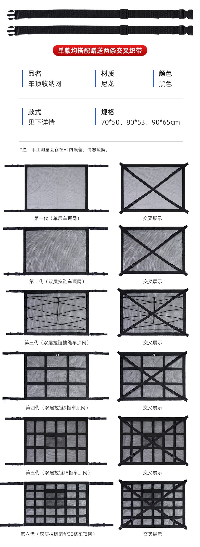 | Color | Sexta generación - red de techo de malla negra de doble cremallera de lujo de 30 cuadrados [incluyendo 2 bandas cruzadas], quinta generación - red de techo de malla negra de doble cremallera de lujo de 18 cuadrados [incluyendo 2 bandas cruzadas], cuarta generación - red de techo de malla negra de 9 cuadrados [incluyendo 2 bandas cruzadas], tercera generación - red de techo de cable de extracción de doble cremallera negra [incluyendo 2 bandas cruzadas], segunda generación - red de techo de doble cremallera negra [incluyendo 2 bandas cruzadas], generación - red de techo de malla negra de una sola capa [incluyendo 2 bandas cruzadas], Sexta generación - red de techo de lujo de 30 cuadrados con cremallera de doble capa beige [delete 2 bandas cruzadas], quinta generación - red de techo de 18 cuadrados con cremallera de doble capa beige [delete 2 bandas cruzadas], cuarta generación - red de techo de 9 cuadrados con cremallera de doble capa beige [delete 2 bandas cruzadas], tercera generación - red de techo de cuerda de extracción de cremallera de doble capa beige [delete 2 bandas cruzadas], segunda generación - red de techo de cremallera de doble capa beige [delete 2 bandas cruzadas], generación - red de techo de una sola capa beige [delete 2 bandas cruzadas] |