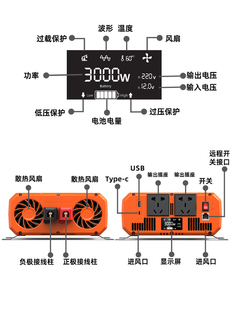 | Especificaciones | 12V a 220V 1000W con pantalla remota, 24V a 220V 1000W con pantalla remota, 48V a 220V 1000W con pantalla remota, 12V a 110V 1000W con pantalla remota, 24V a 110V 1000W con pantalla remota, 12V a 220V 1500W con pantalla remota, 24V a 220V 1500W con pantalla remota, 48V a 220V 1500W con pantalla remota, 12V a 110V 1500W con pantalla remota, 24V a 110V 1500W con pantalla remota, 12V a 220V 2000W con pantalla remota, 24V a 220V 2000W con pantalla remota, 48V a 220V 2000W con pantalla remota, 12V a 110V 2000W con pantalla remota, 24V a 110V 2000W con pantalla remota, 12V a 220V 3000W con pantalla remota, 24V a 220V 3000W con pantalla remota, 48V a 220V 3000W con pantalla remota, 12V a 110V 3000W con pantalla remota, 24V a 110V 3000W con pantalla remota, 12V a 220V 4000W con pantalla remota, 24V a 220V 4000W con pantalla remota, 48V a 220V 4000W con pantalla remota, 12V a 110V 4000W con pantalla remota, 24V a 110V 4000W con pantalla remota, 24V a 220V 5000W con pantalla remota, 48V a 220V 5000W con pantalla remota |