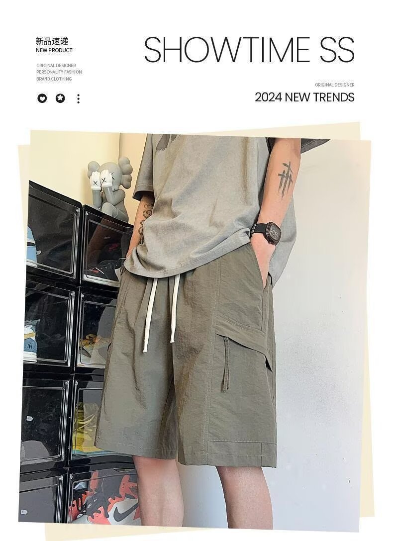 Camisas menos ropa, nuevos productos de verano, monos casuales para hombres, pantalones cortos ins de tendencia recta, pantalones transpirables sueltos de todo fósforo
