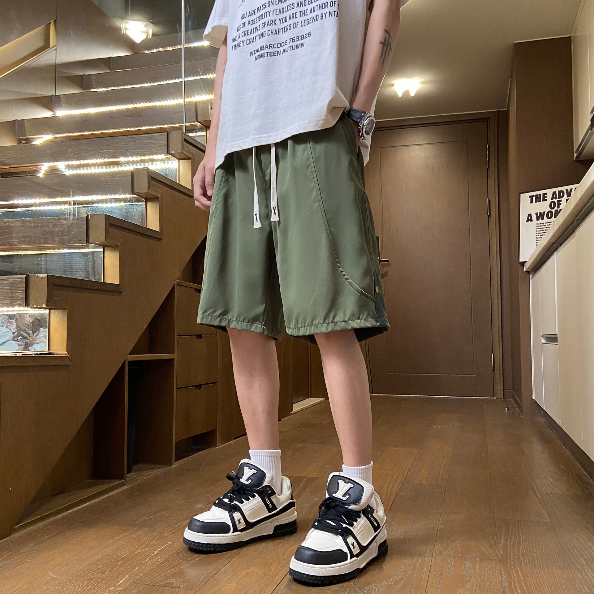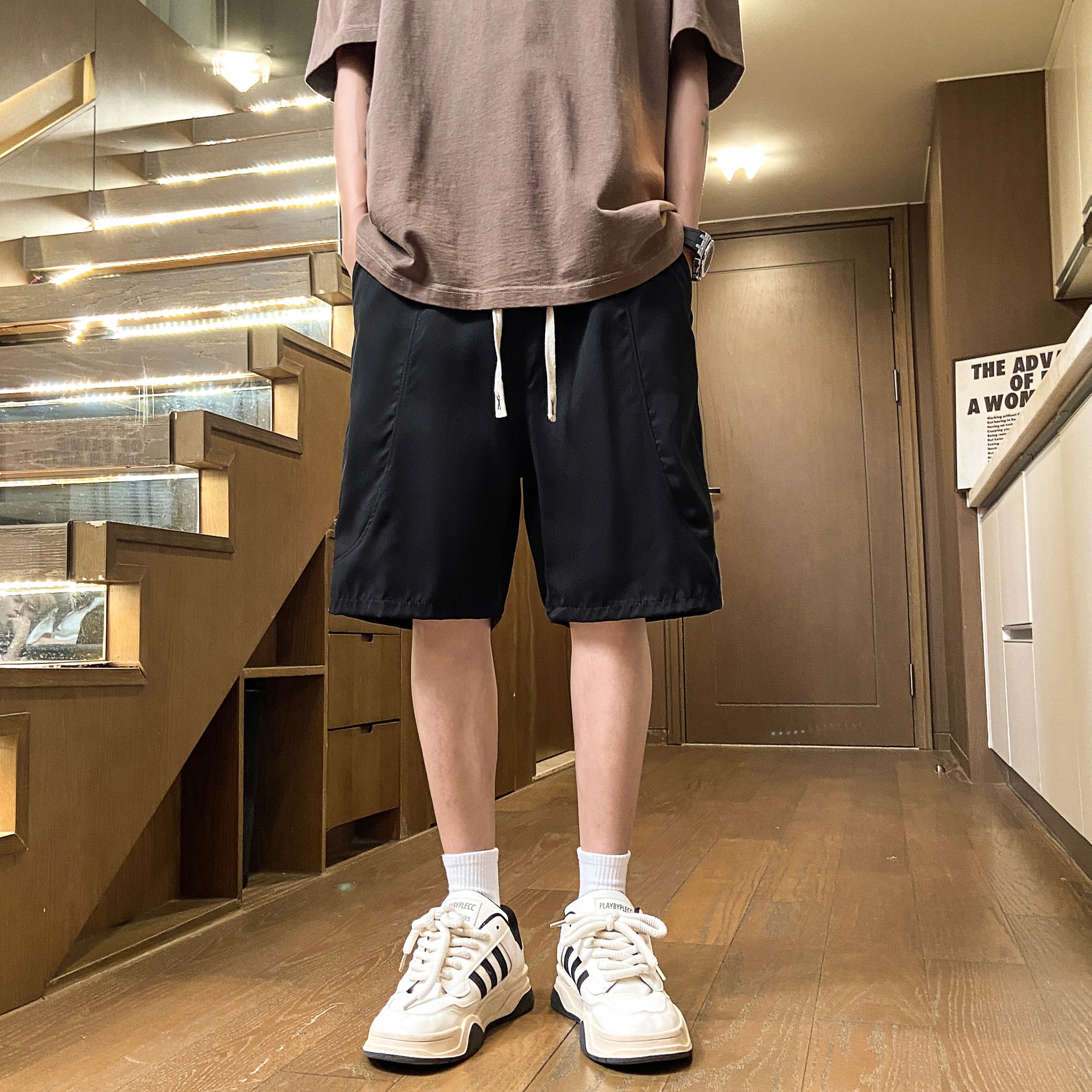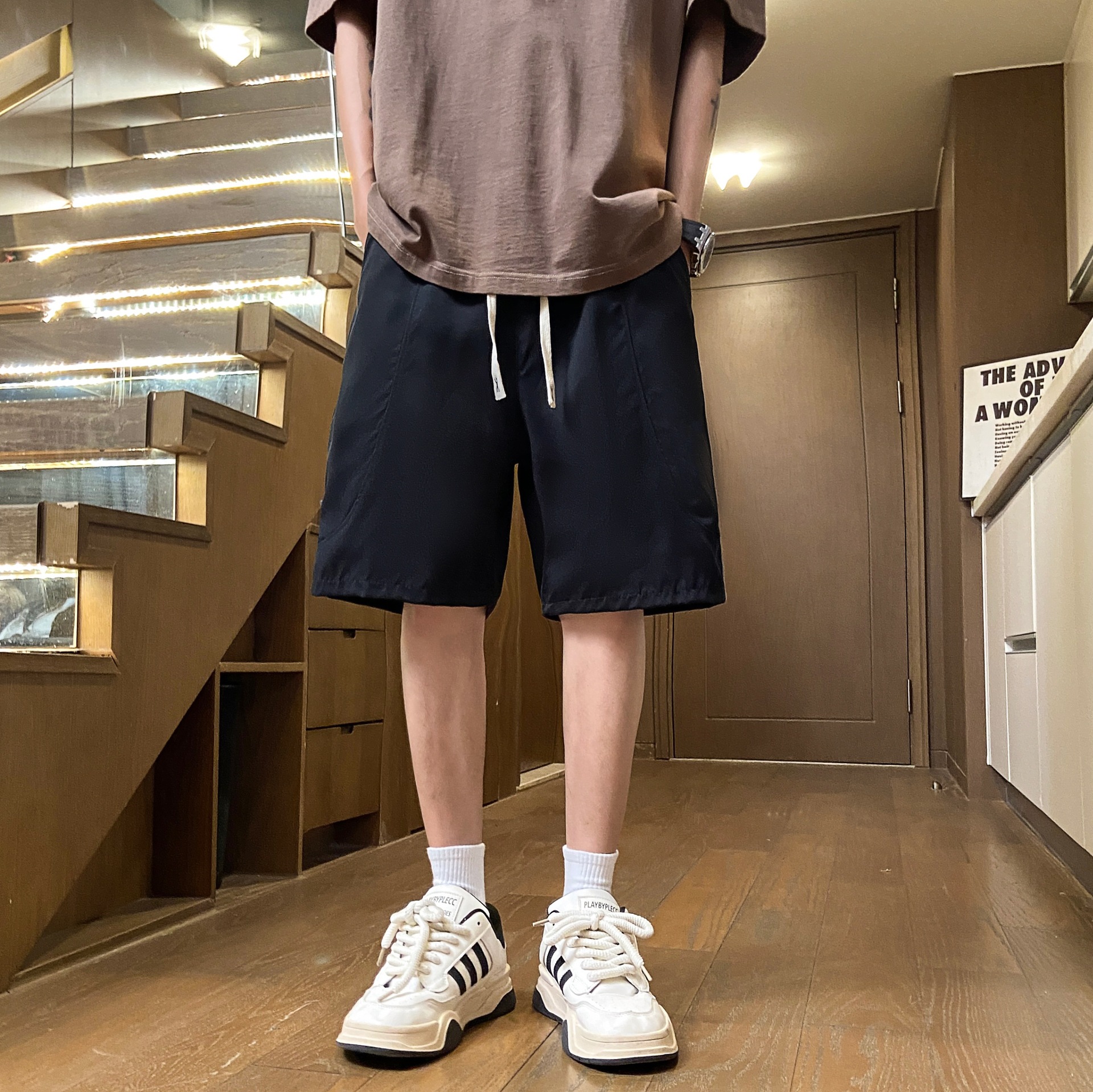 Camisas y menos ropa, comercio exterior japonés, pantalones cortos casuales retro, estilo fino de verano para hombres, cintura elástica holgada y cómoda