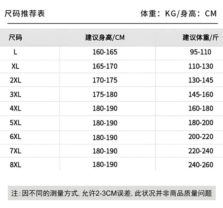 | Talla | L,XL,2XL,3XL,4XL,5XL,6XL,7XL,8XL |