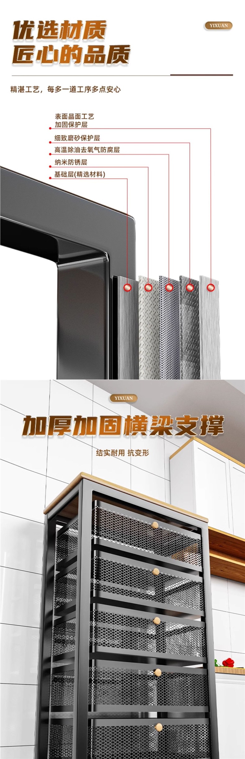 | Número de capas (especificaciones) | 3层中号黑送脚垫+万向百搭,3层中号白送脚垫+万向轮百搭,4层中号黑送脚垫+万向轮百搭,4层中号白送脚垫+万向轮百搭,4层黑-特厚精钢滑轮+挂钩今日,5层黑-特厚精钢滑轮+挂钩推,5层大号白送脚垫+万向轮推荐,5层大号黑送脚垫+万向轮推荐,店长推荐5层金特大号加长款送脚垫+万向轮51*30*10,方管3层黑-豪华加厚挂钩+滑轮+挂盒,方管4层黑 -豪华加厚挂钩+滑轮+挂盒,方管5层黑 -豪华加厚挂钩+滑轮+挂盒,三层俩网一板-豪华加厚挂盒+挂钩+滑轮,四层俩网俩板-豪华加厚挂盒+挂钩+滑轮,4层黑3网1板小家电款+送挂钩,5层黑3网2板小家电款+送挂钩,5层黑加宽3网2板小家电款+送挂钩,大号可按喜好调节黑色四层承重85斤(2网2板),大号可按喜好调节黑色五层承重155斤(2网3板),黑色全钢木板大台面抽拉4层33*42*60(三篮一板),白色全钢木板大台面抽拉柜4层33*42*60(三篮一板),黑色全钢木板大台面抽拉柜5层33*42*78(四篮一板),白色全钢木板大台面抽拉柜5层33*42*78(四篮一板),黑色全钢木板大台面抽拉柜6层33*42*95(五篮一板),白色全钢木板大台面抽拉柜6层33*42*95(五篮一板),大号黑色全钢木板大台面抽拉柜4层46*25*60(三篮,大号白色全钢木板大台面抽拉柜4层46*25*60(三篮,大号黑色全钢木板大台面抽拉柜5层46*25*75(四篮,大号白色全钢木板大台面抽拉柜5层46*25*75(四篮,大号黑色全钢木板大台面抽拉柜6层46*25*95(五篮,大号白色全钢木板大台面抽拉柜6层46*25*95(五篮,大号方管3层黑稳固特厚全钢挂钩+滑轮+挂盒,大号方管4层黑稳固特厚全钢挂钩+滑轮+挂盒,大号方管5层黑稳固特厚全钢挂钩+滑轮+挂盒,大号三层俩网一稳固特厚全钢挂盒+挂钩+滑轮,大号四层俩网俩板稳固特厚全钢挂盒+挂钩+滑轮】,大号五层三网俩板-稳固特厚全钢挂盒+挂钩+滑轮,大号五层俩网三板稳固特厚全钢挂盒+挂钩+滑轮,大号五层四网一板稳固特厚全钢挂盒+挂钩+滑轮 |
