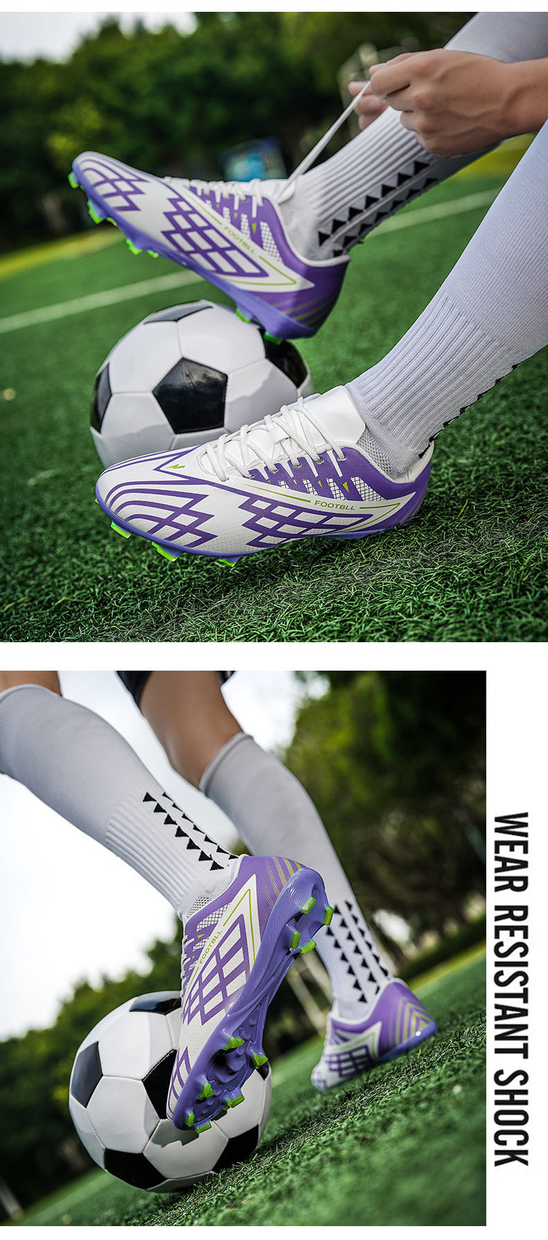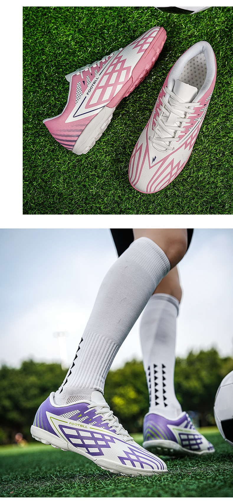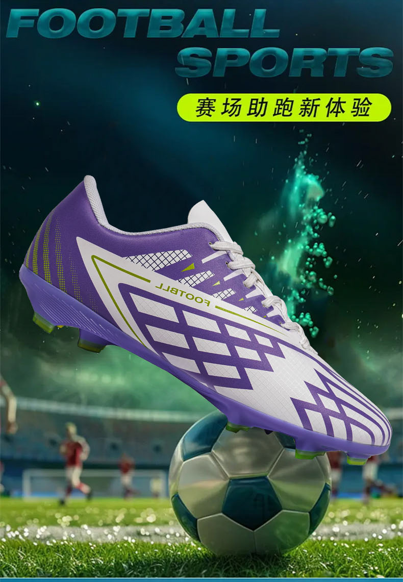 2025 nuevo éxito transfronterizo juveniles, niños, estudiantes, zapatos de fútbol masculinos y femeninos, zapatos de fútbol de clavos largos, zapatos de fútbol de clavos