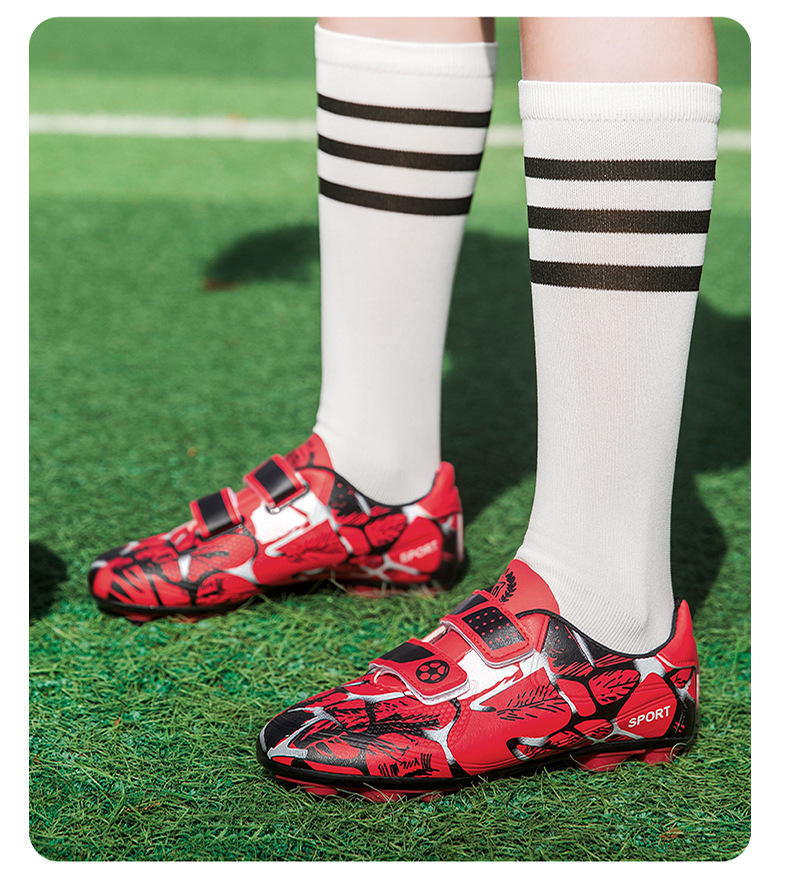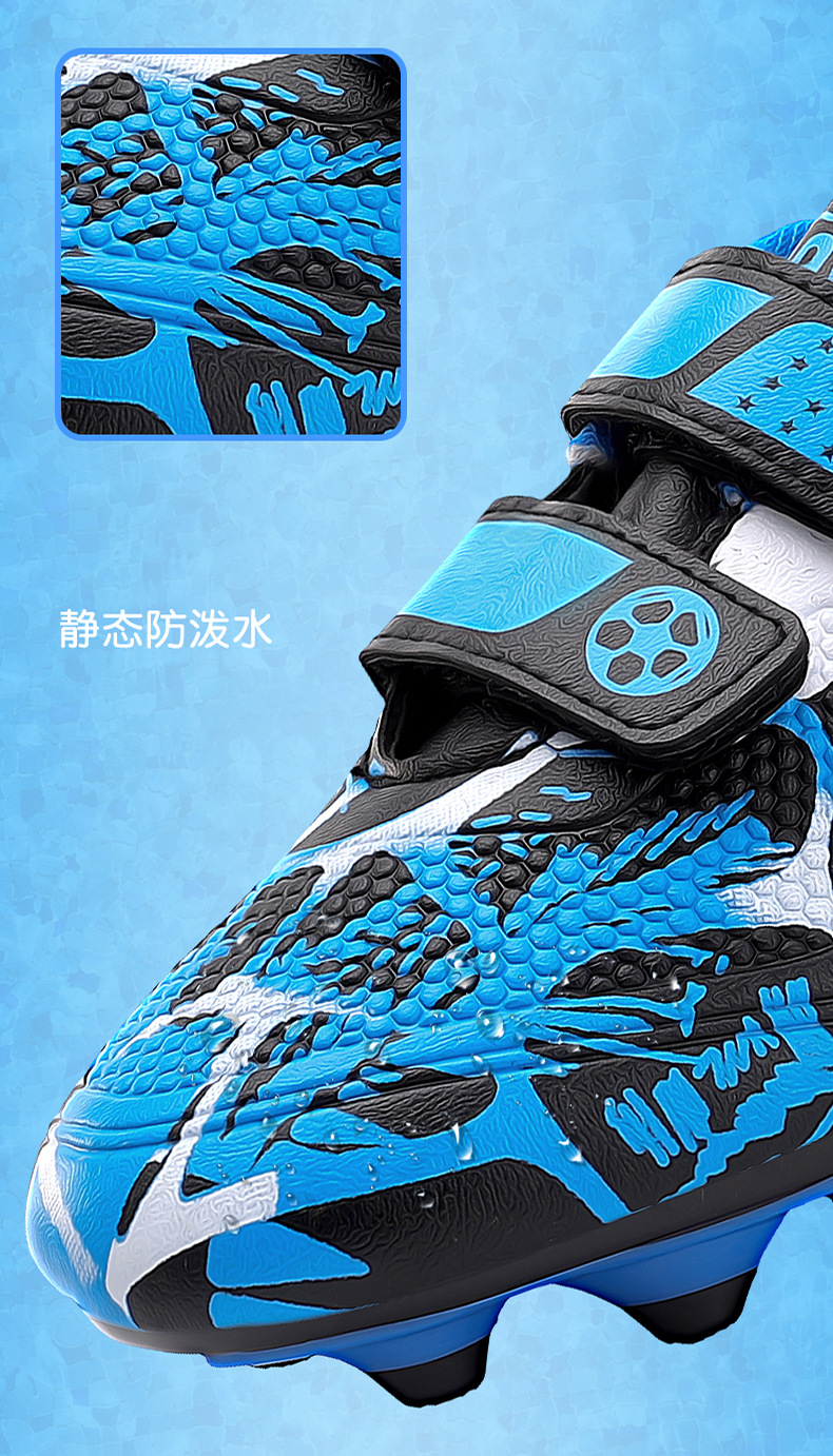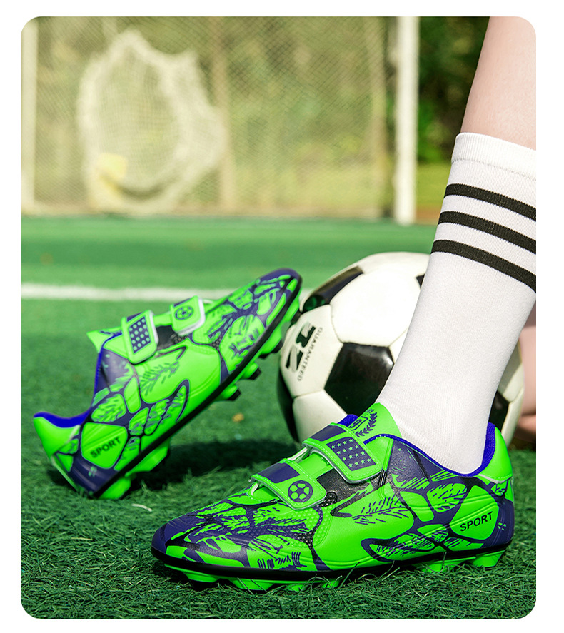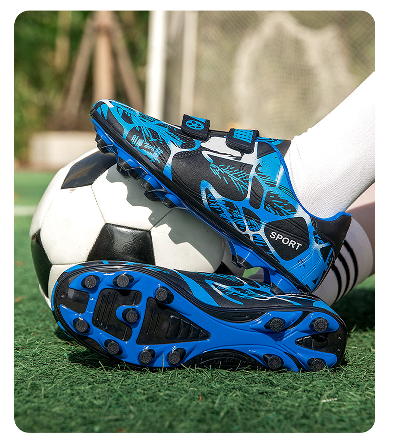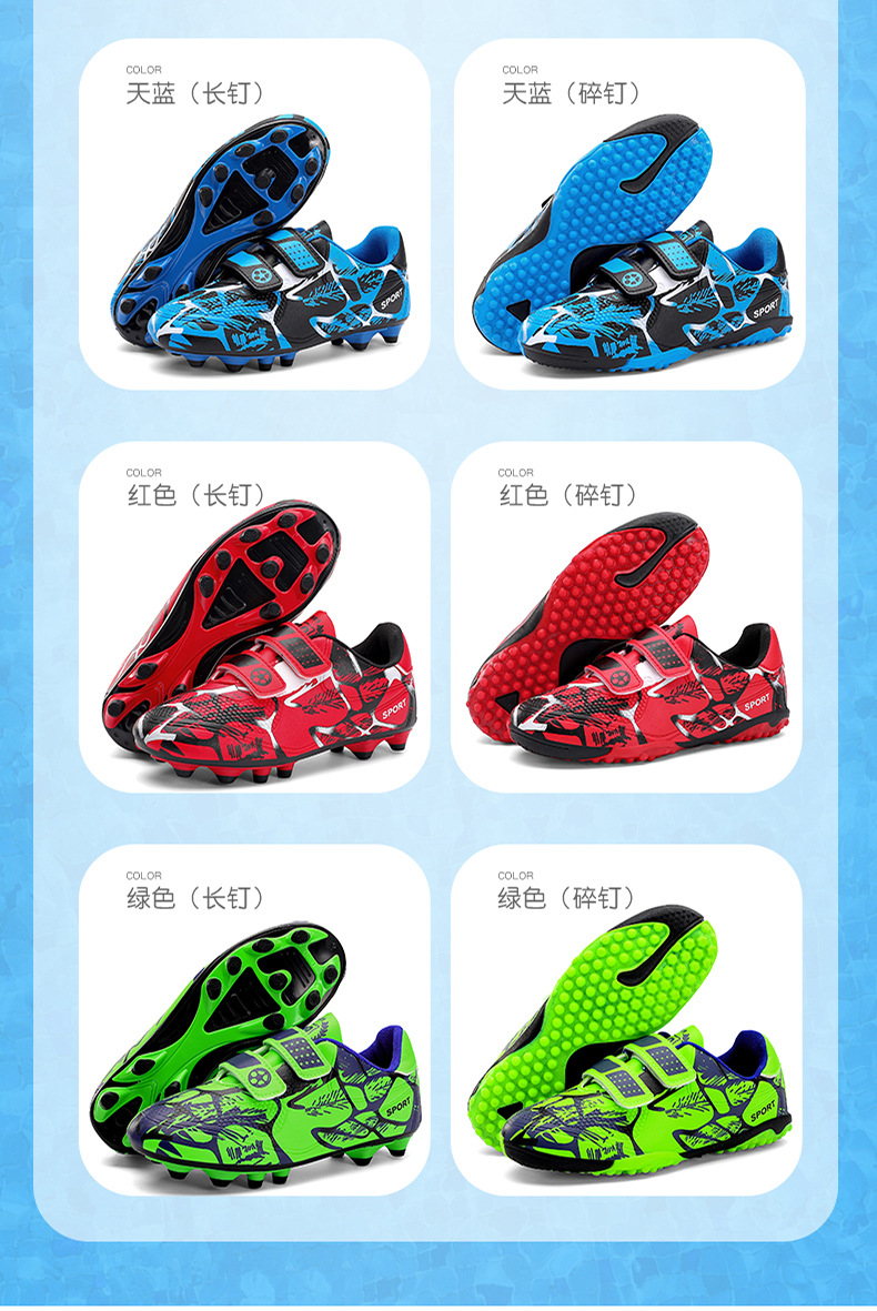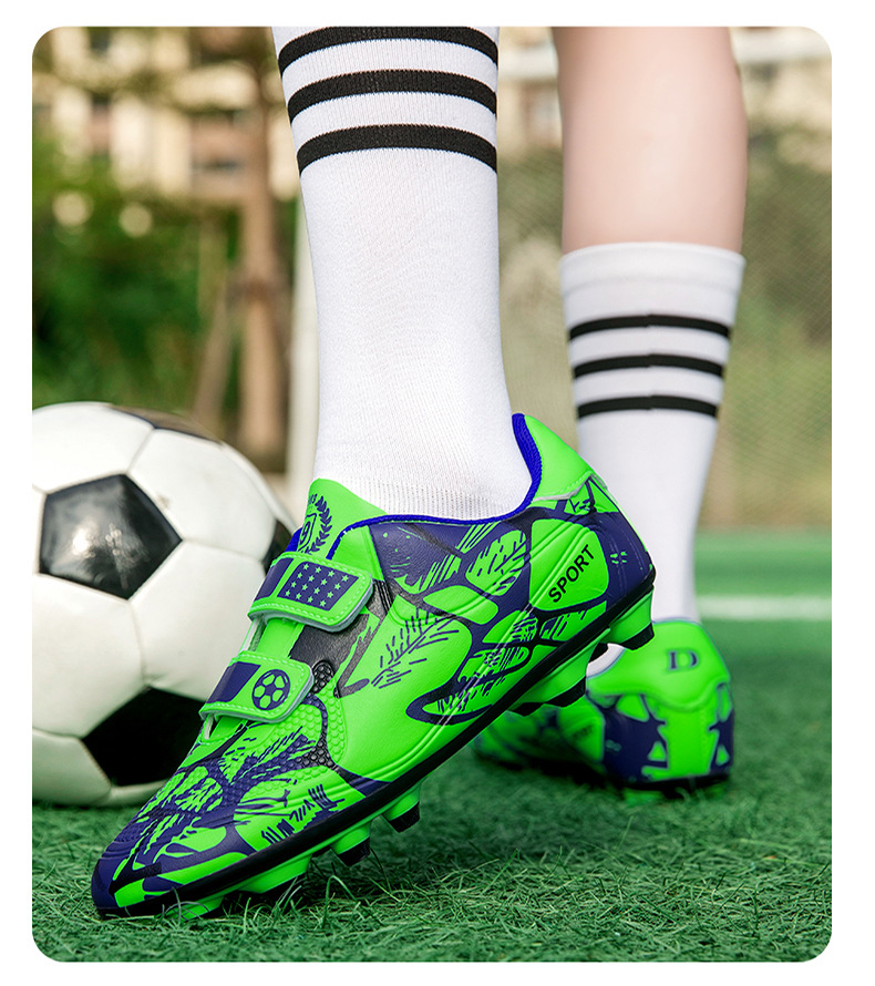 Zapatos de fútbol infantiles TF transfronterizos bajos velcro zapatos de entrenamiento de entrenamiento para estudiantes de primaria zapatos de entrenamiento de clavos largos