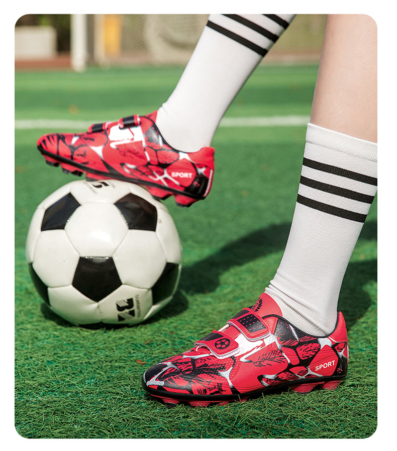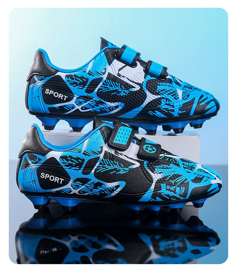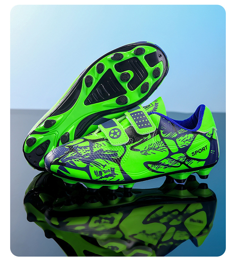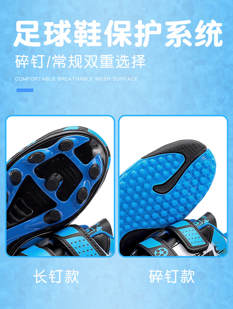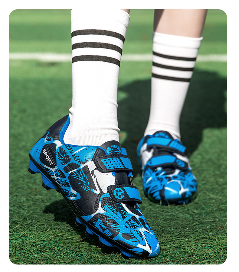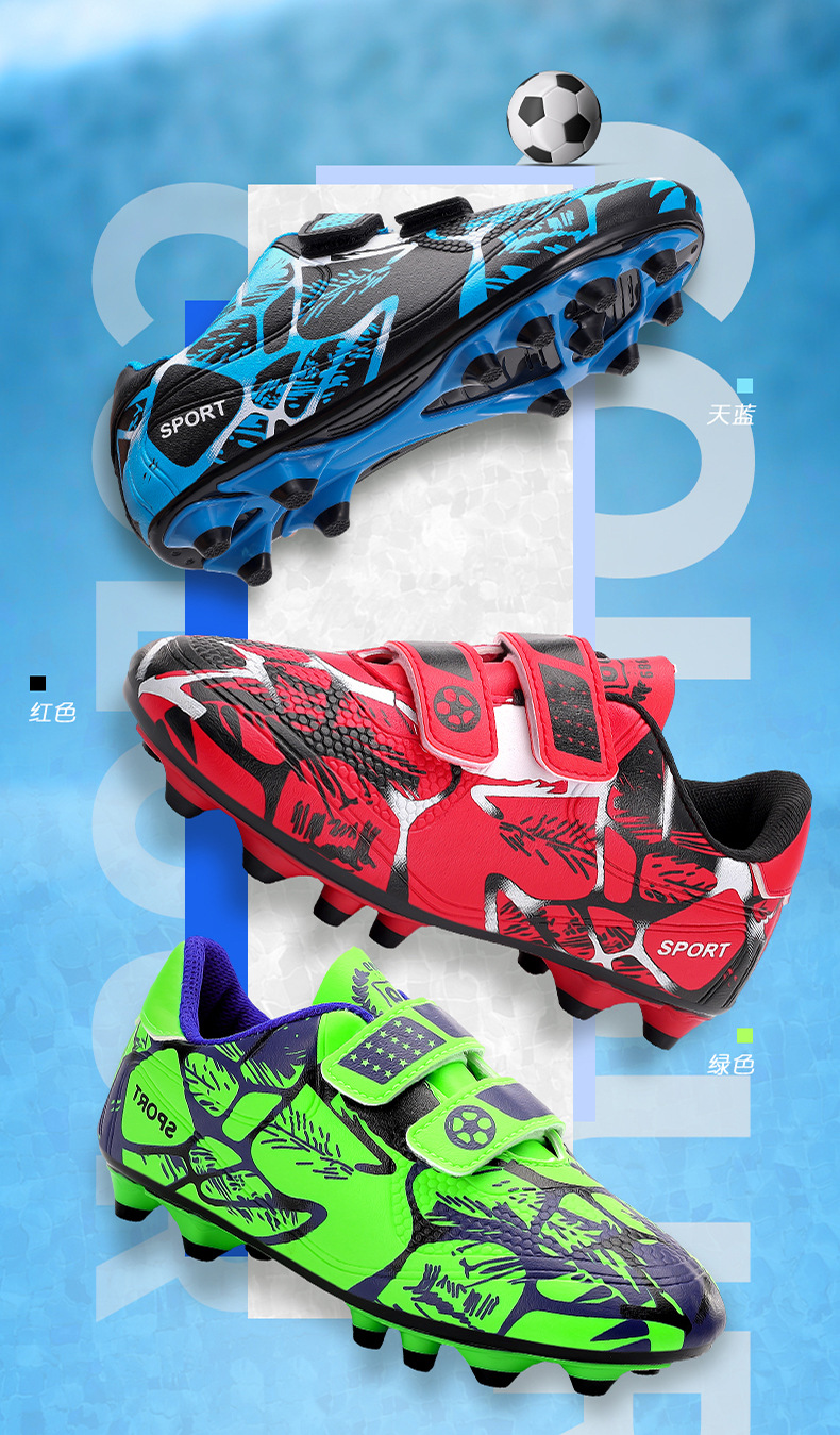 Zapatos de fútbol infantiles TF transfronterizos bajos velcro zapatos de entrenamiento de entrenamiento para estudiantes de primaria zapatos de entrenamiento de clavos largos