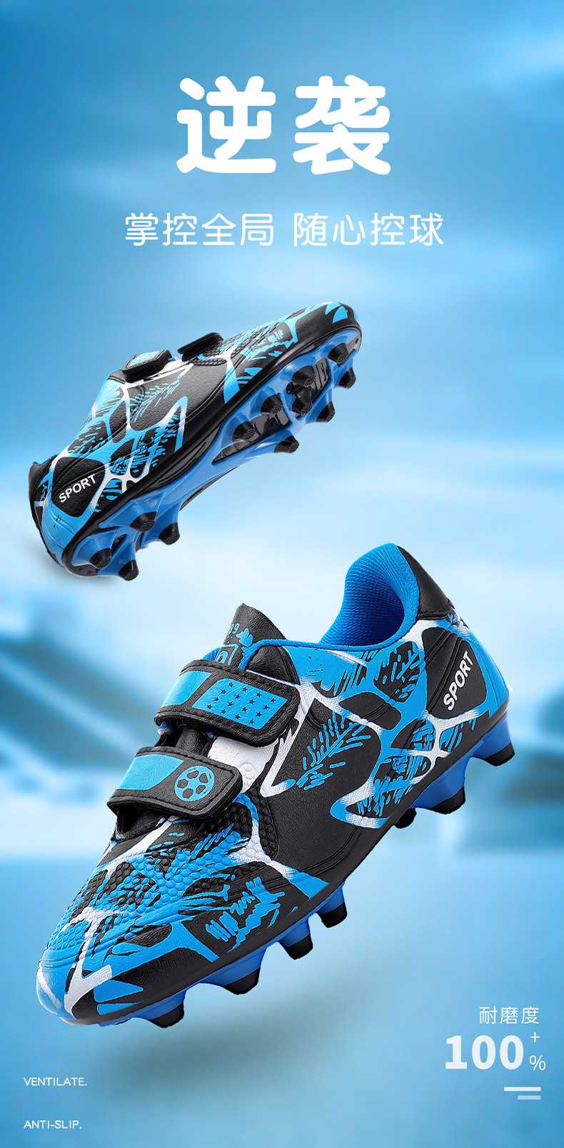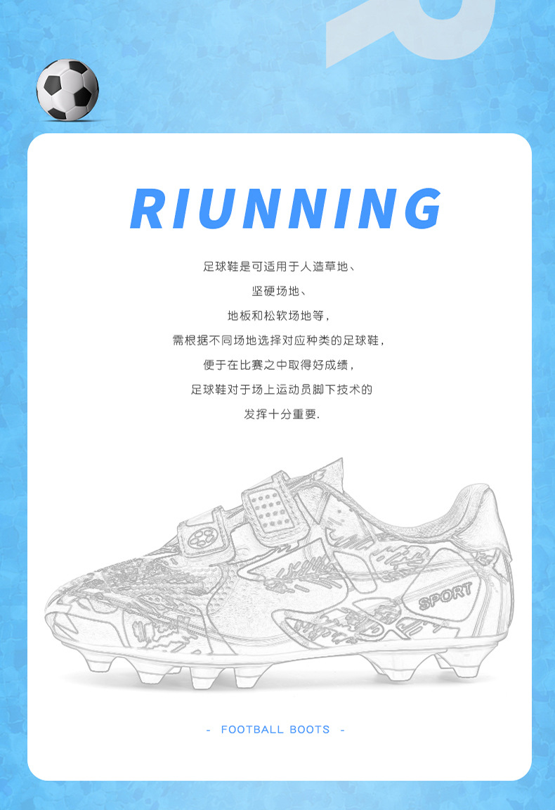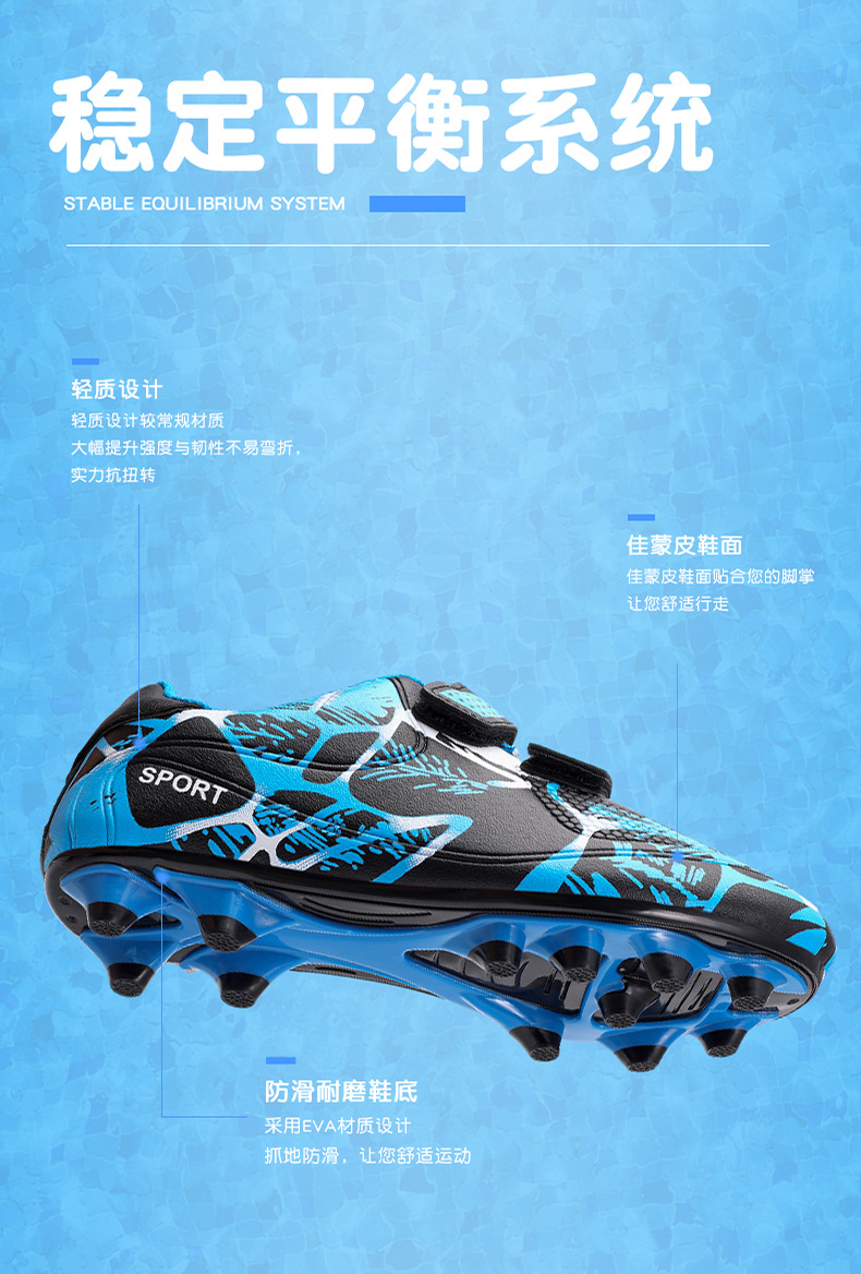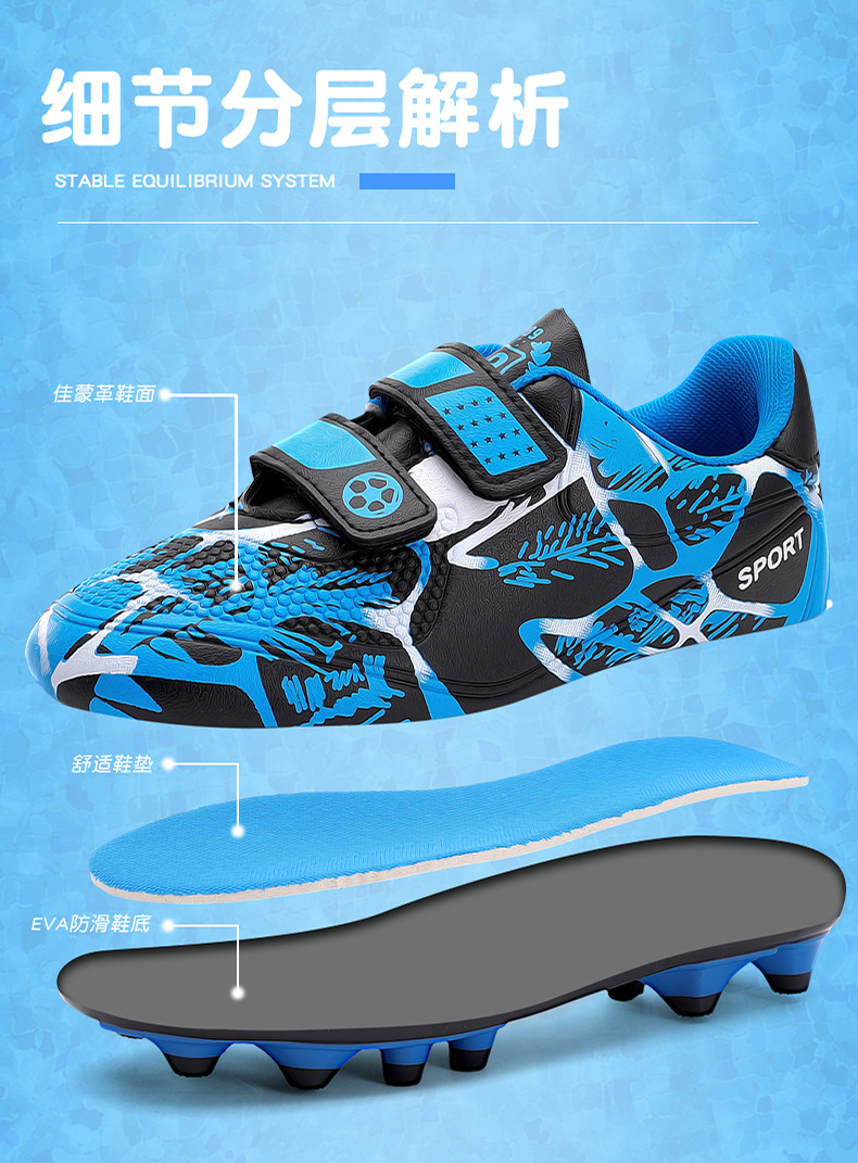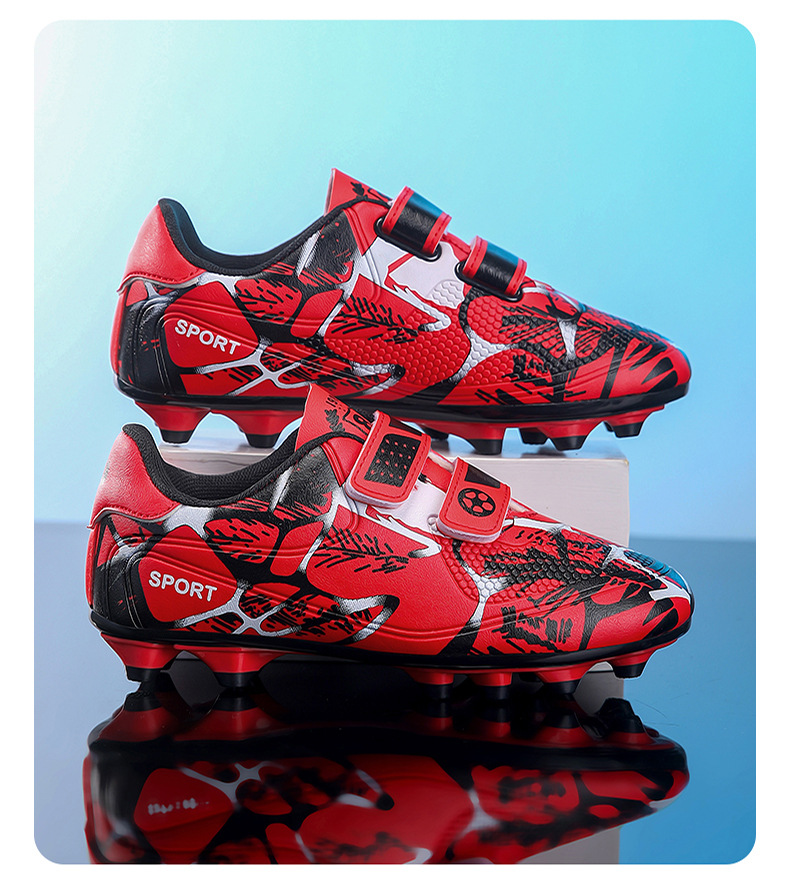 Zapatos de fútbol infantiles TF transfronterizos bajos velcro zapatos de entrenamiento de entrenamiento para estudiantes de primaria zapatos de entrenamiento de clavos largos