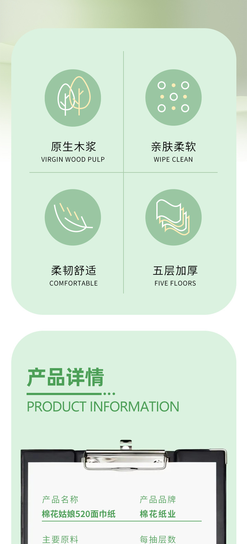 | Especificaciones del producto | 20 paquetes de caja completa [cinco capas gruesas 520 hojas] paquete de ventaja, 12 paquetes / paquete [cinco capas gruesas 520 hojas] paquete asequible |