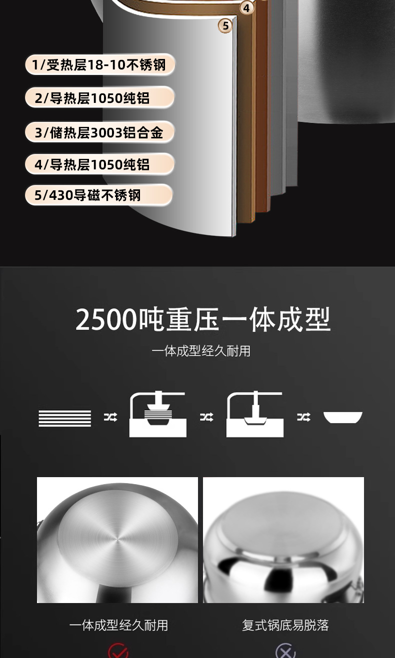 | Material del fondo de la olla | Fondo compuesto multicapa |