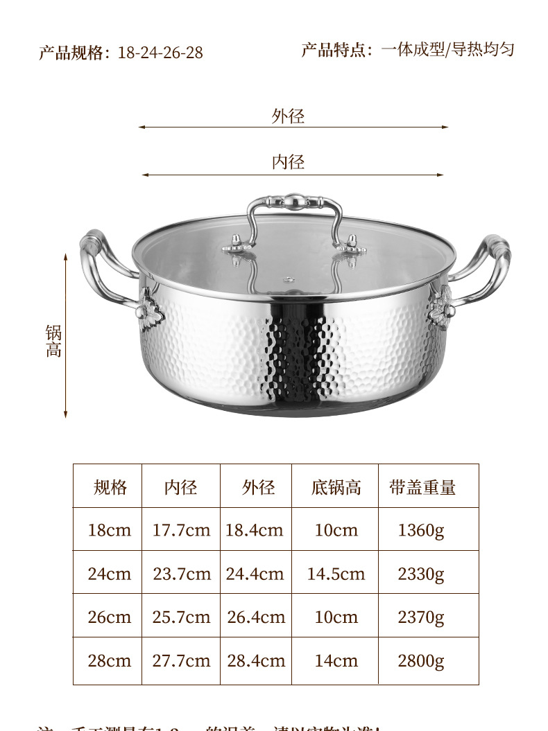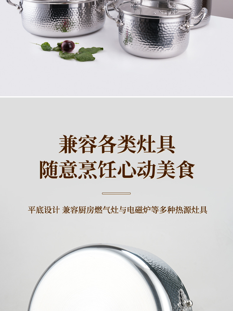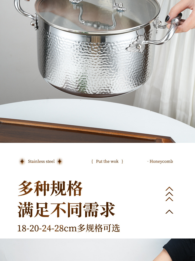 | Colores | Olla de sopa de doble oreja con patrón de martillo de 18cm (con tapa),Olla de sopa de doble oreja con patrón de martillo de 24cm (con tapa),Olla de sopa binaural con patrón de martillo de 26cm (con tapa),Olla de sopa de doble oreja con patrón de martillo de 28cm (con tapa),Juego de cuatro piezas |
