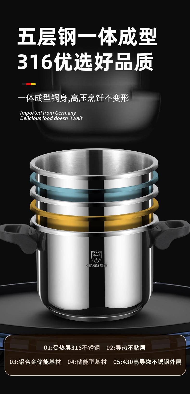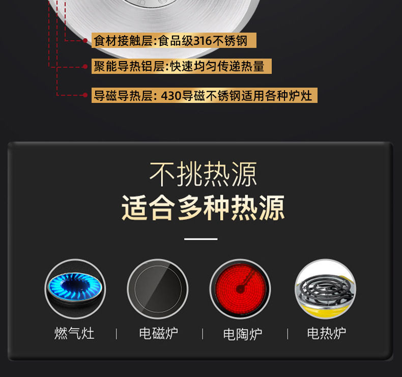 | Material del fondo de la olla | Fondo compuesto multicapa |
