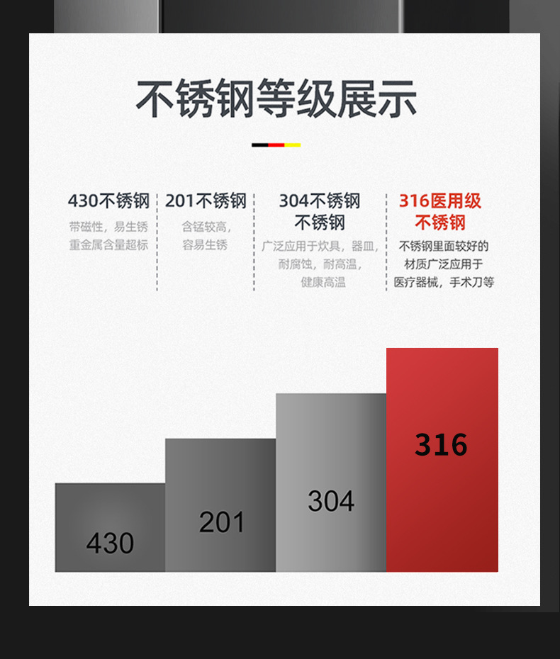 | Material de primera calidad | acero inoxidable 316 |
