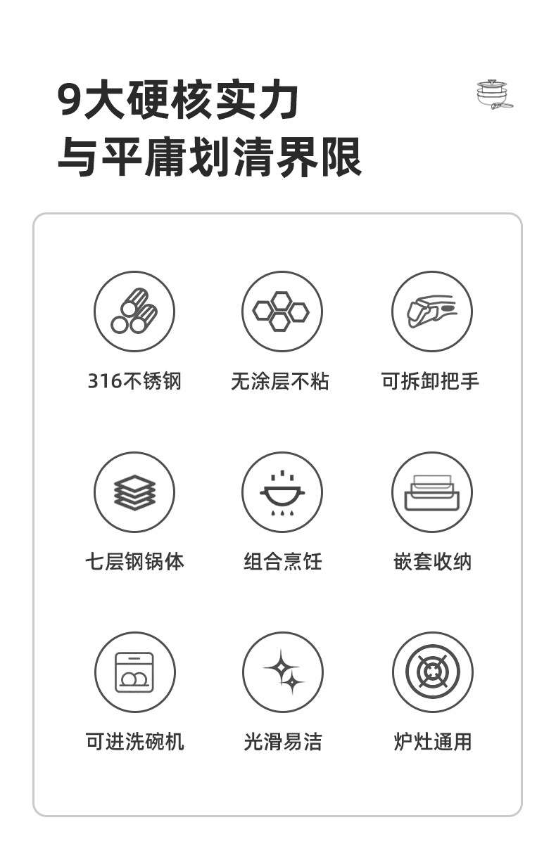 | Especificaciones | Pan de 26CM sin cubierta [Mano extraíble de acero 316 grueso], Pan de 28CM sin cubierta [Mano extraíble de acero 316 grueso], Pan de 28CM con cubierta [Mano extraíble de acero 316 grueso], Pan de 24CM con cubierta [Mano extraíble de acero 316 grueso], Pan de 24CM con cubierta + Pan de 26CM con cubierta + Pan de 28CM |