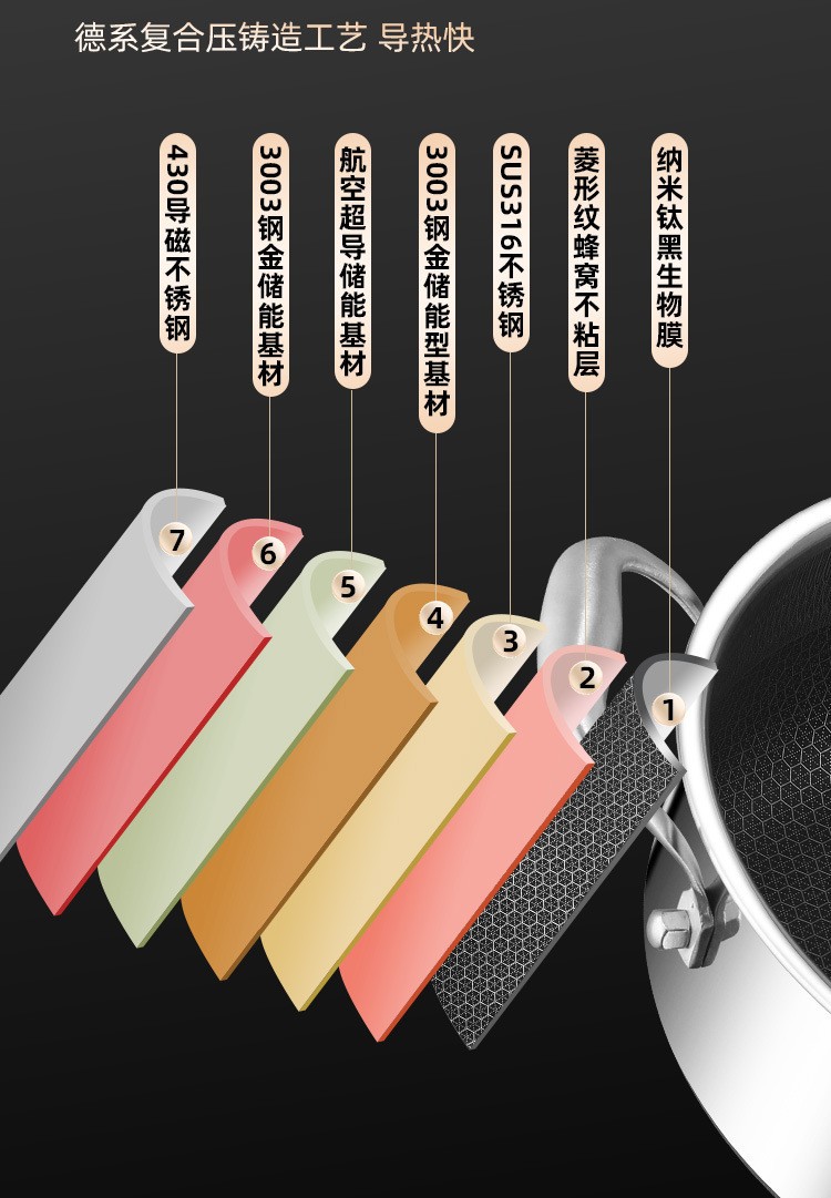 | Material del Fondo de la olla | Fondo multicapa compuesto |
