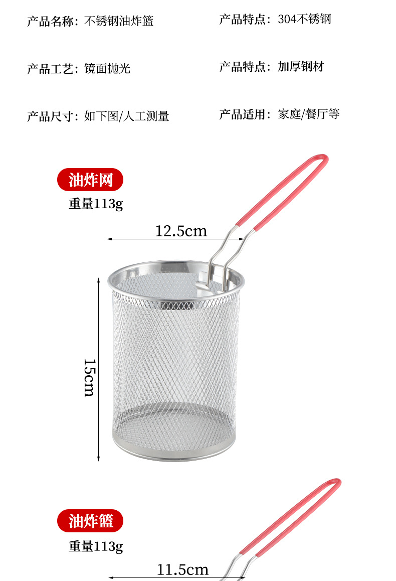 Cestas de freida al por mayor 304 cestas de acero inoxidable freidoras de galletas fritas comerciales