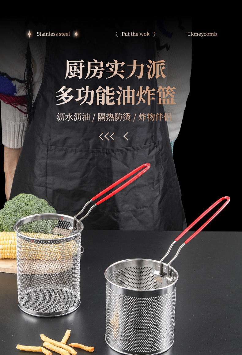 Red de frita de mano, red de frita desmontable y cesta de frita desmontable