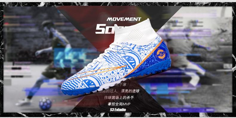 Nuevos zapatos de fútbol al por mayor de los hombres transpirable fisión de Pato Mandarín alto-top uñas cortas uñas rotas zapatos de fútbol de hierba más tamaño de entrenamiento