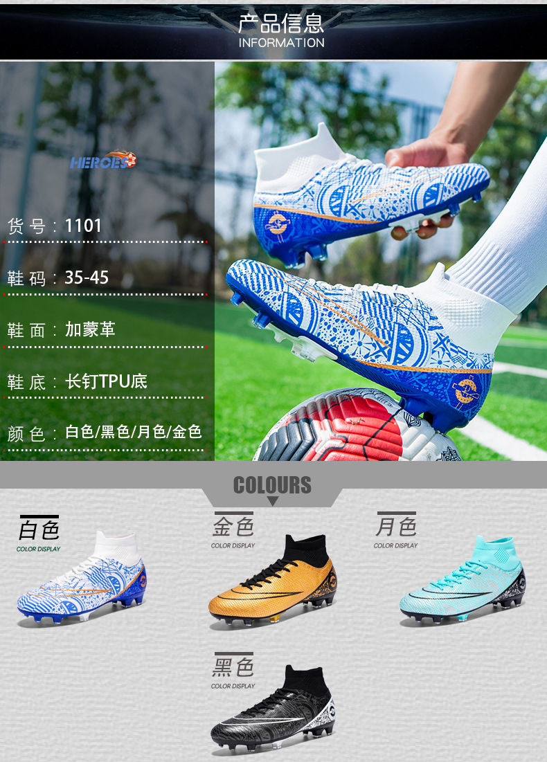 2025 nuevos zapatos de fútbol juveniles de clavos largos transfronterizos hombres y mujeres zapatos de entrenamiento de moda fábrica de zapatos
