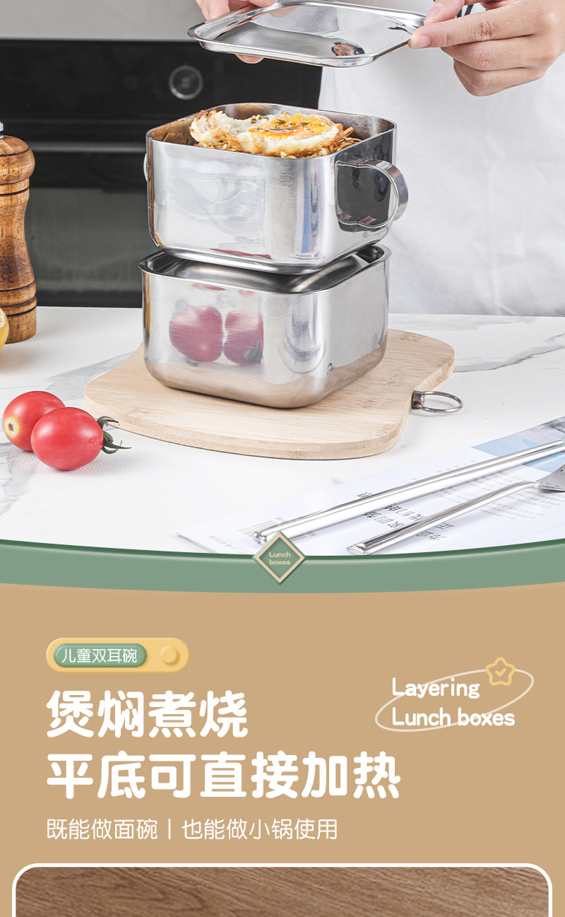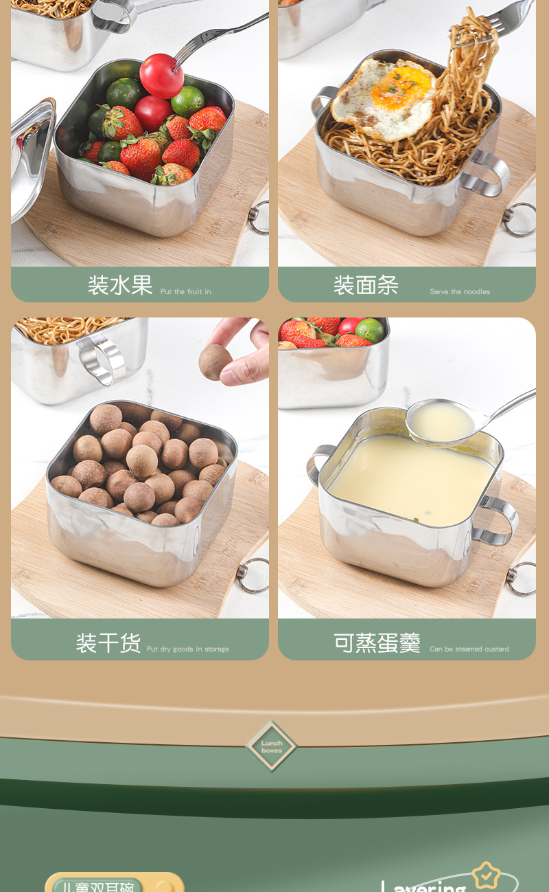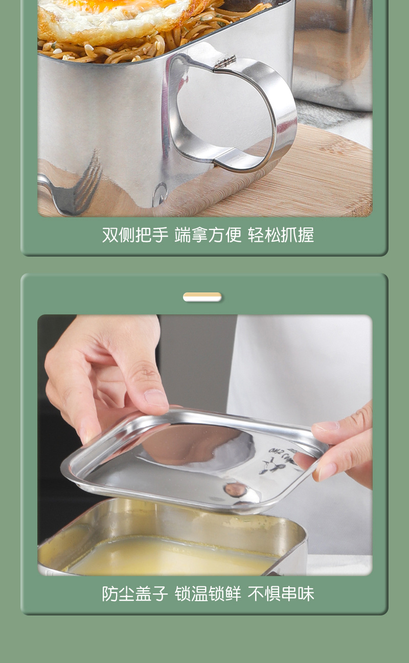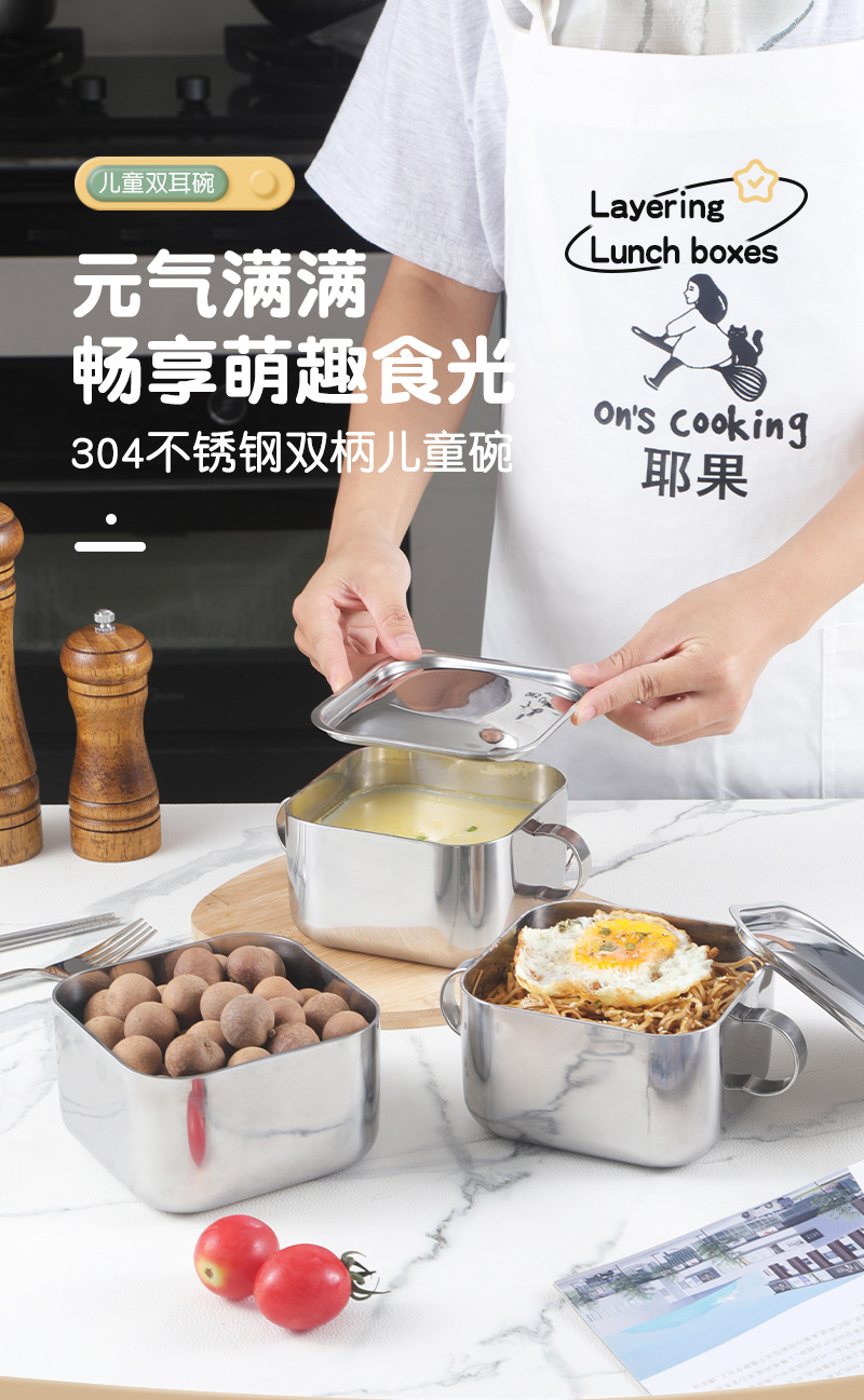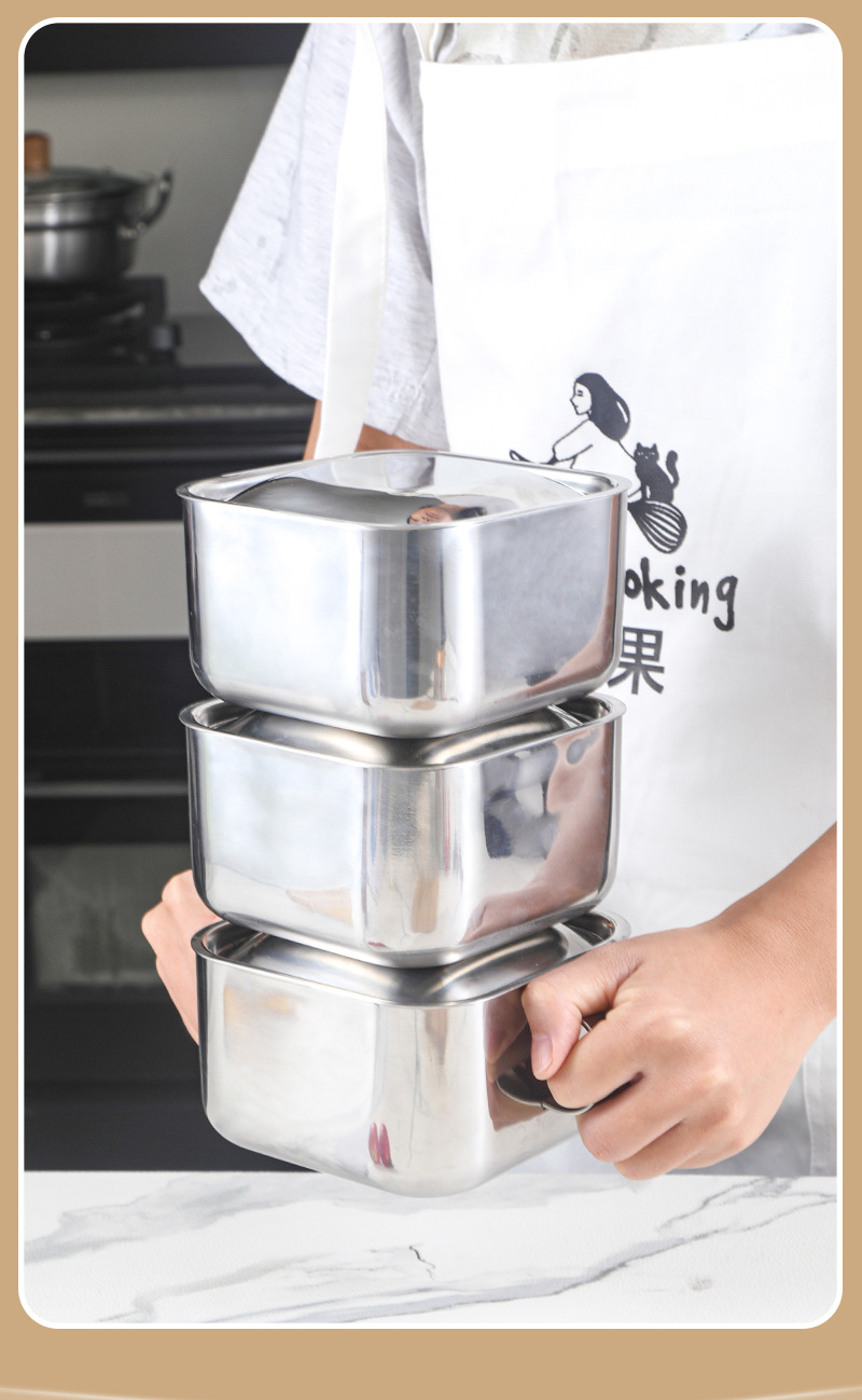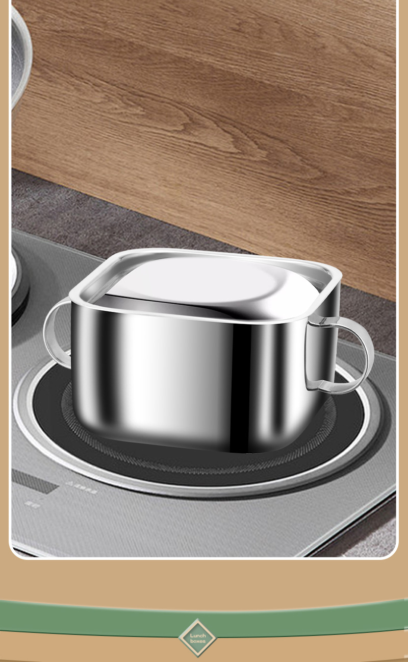 | Especificaciones | Cuenco cuadrado con mango con cubierta de acero, cuenco cuadrado sin mango con cubierta de acero |
