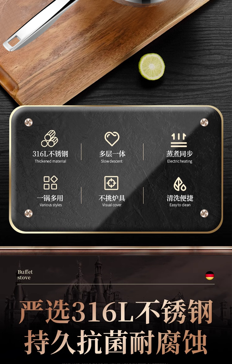 | Material del Fondo de la olla | Tres capas de fondo |