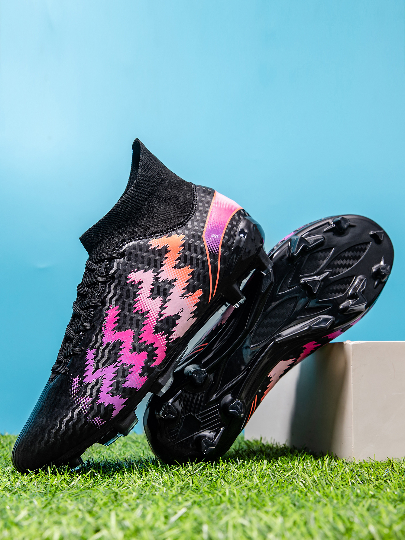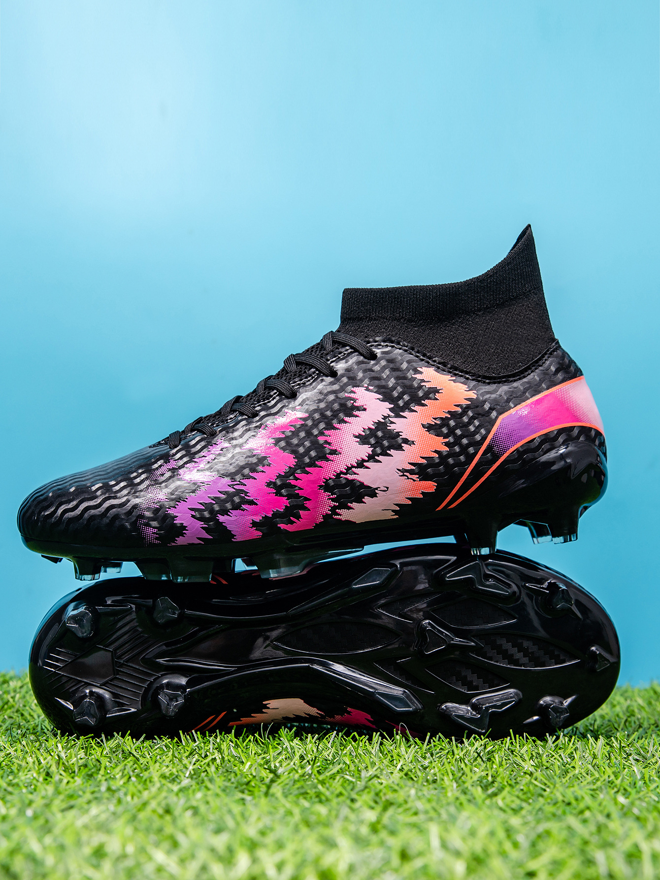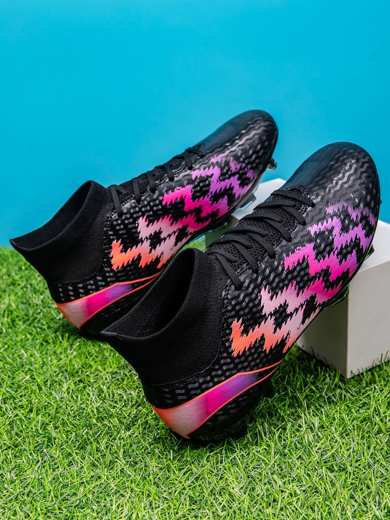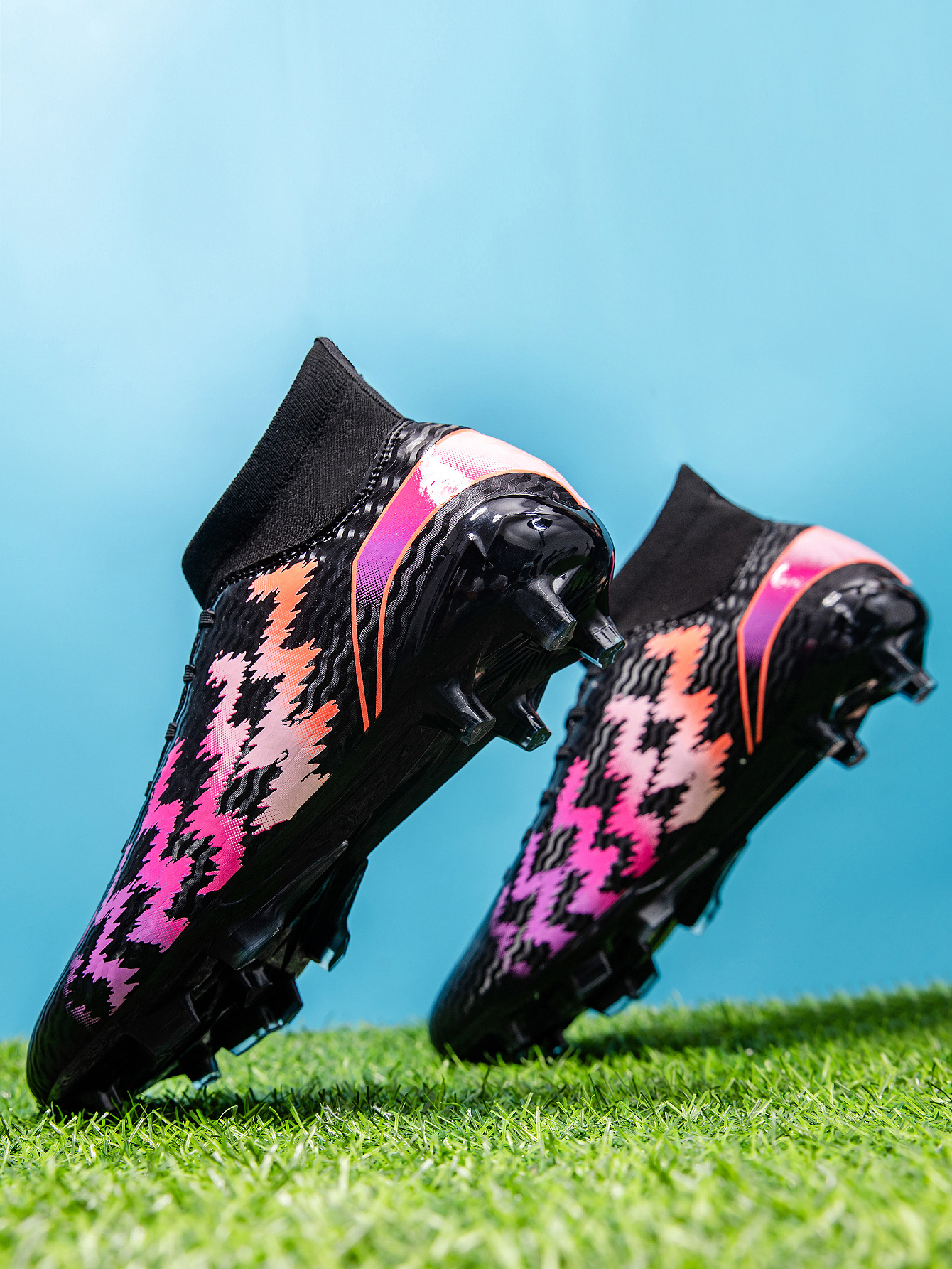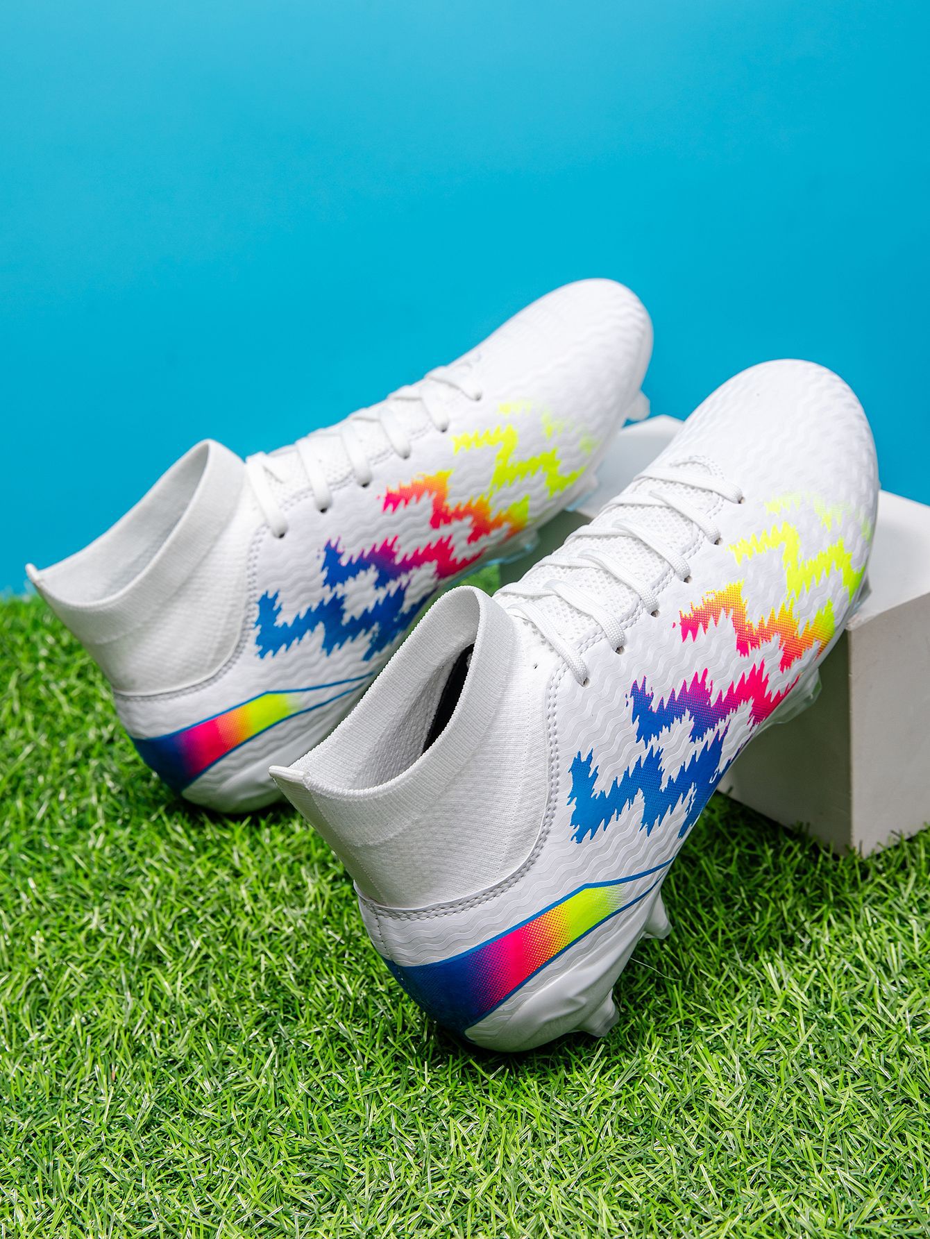 2025 zapatos de fútbol nuevo color juvenil anti-deslizante hombre y mujer AG clavos largos de césped estudiantes fabricantes transfronterizos