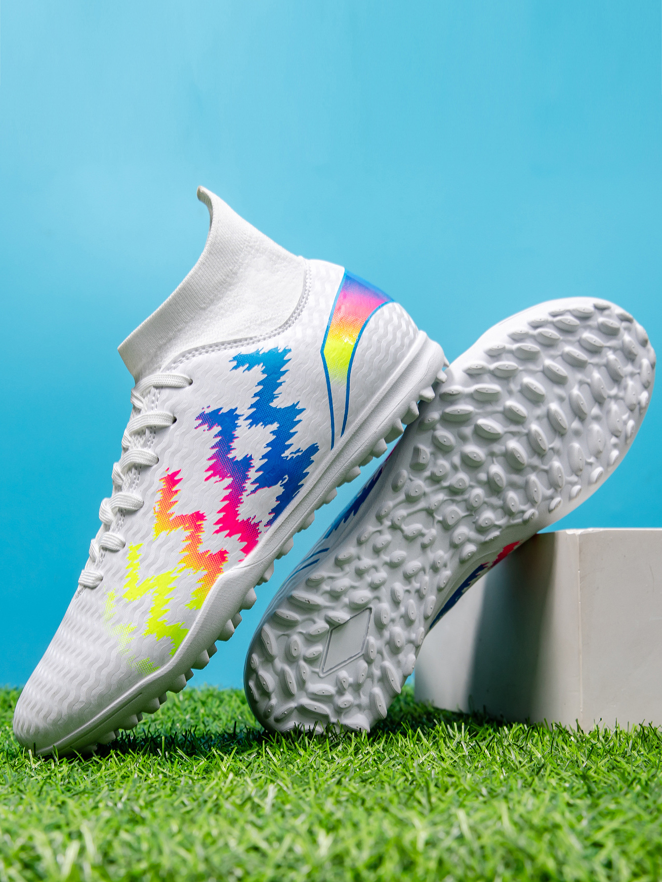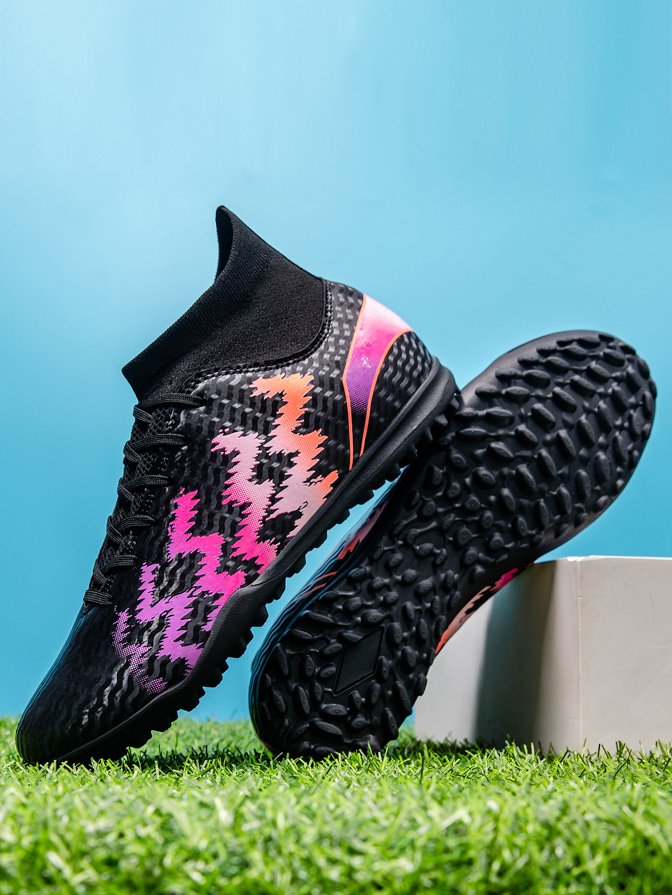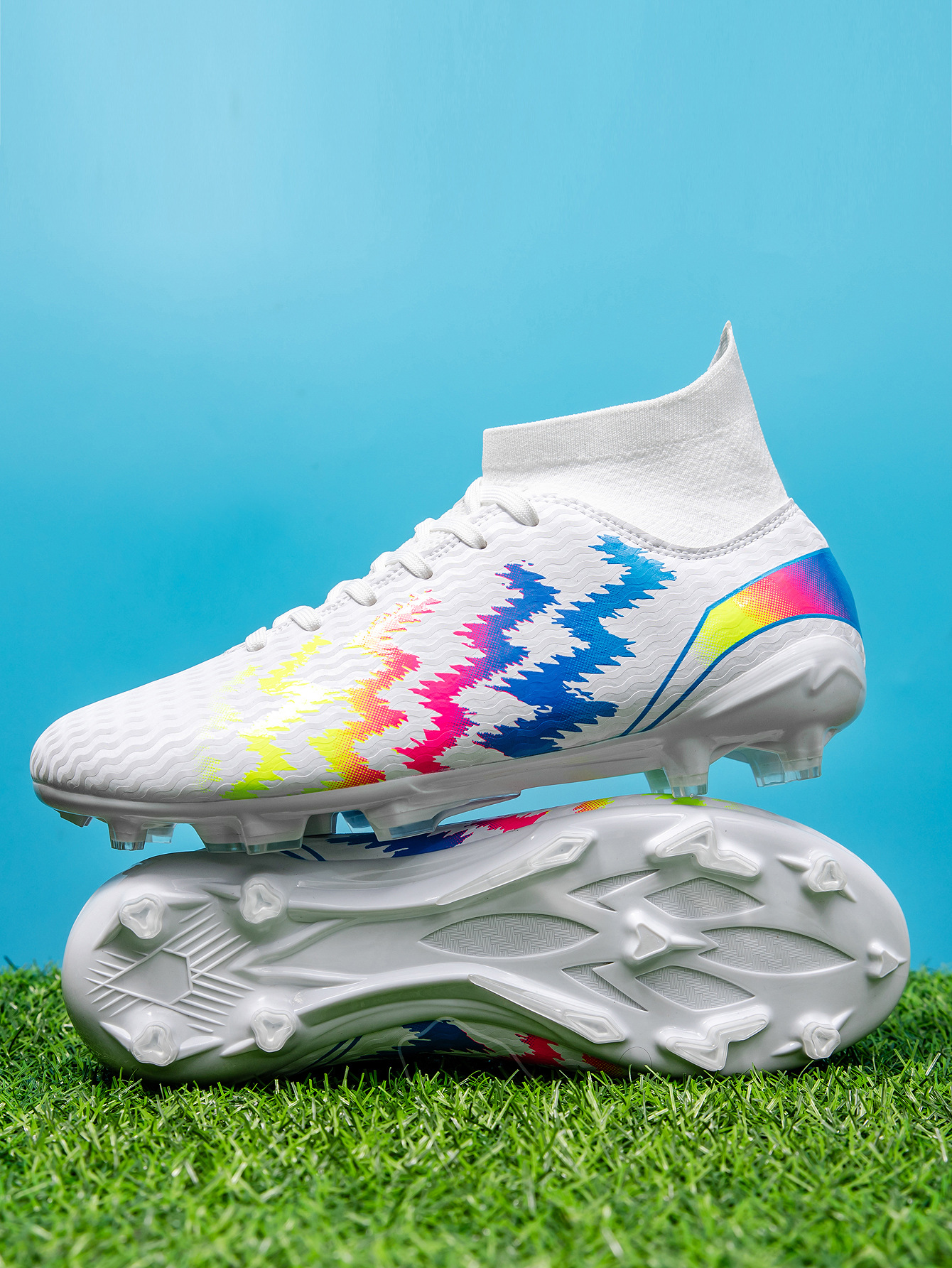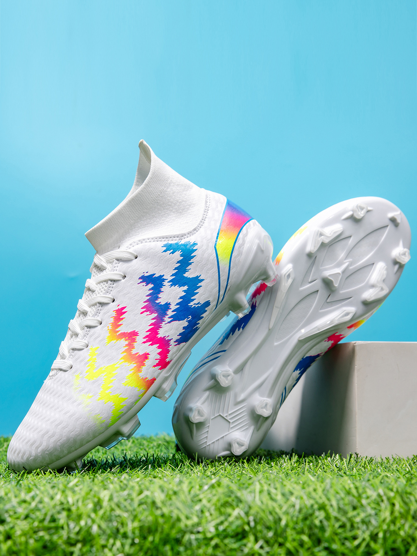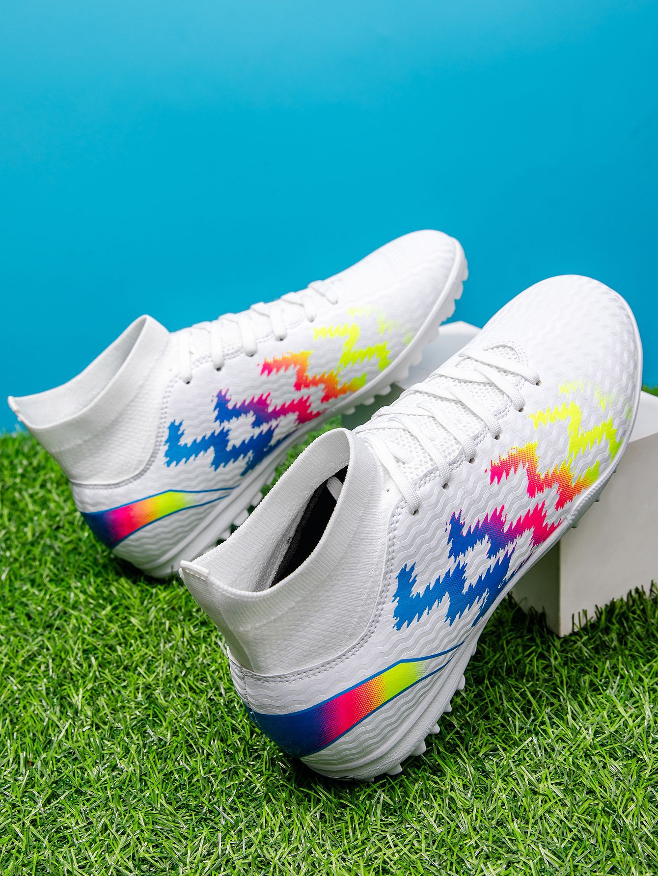 2025 zapatos de fútbol nuevo color juvenil anti-deslizante hombre y mujer AG clavos largos de césped estudiantes fabricantes transfronterizos