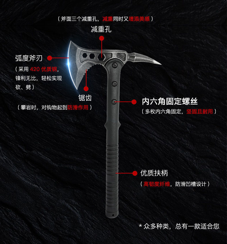| Color | Jungle hacha de montaña, hacha de fuego doméstico, hacha táctica de combate |