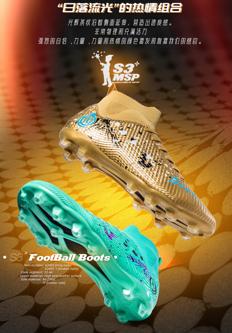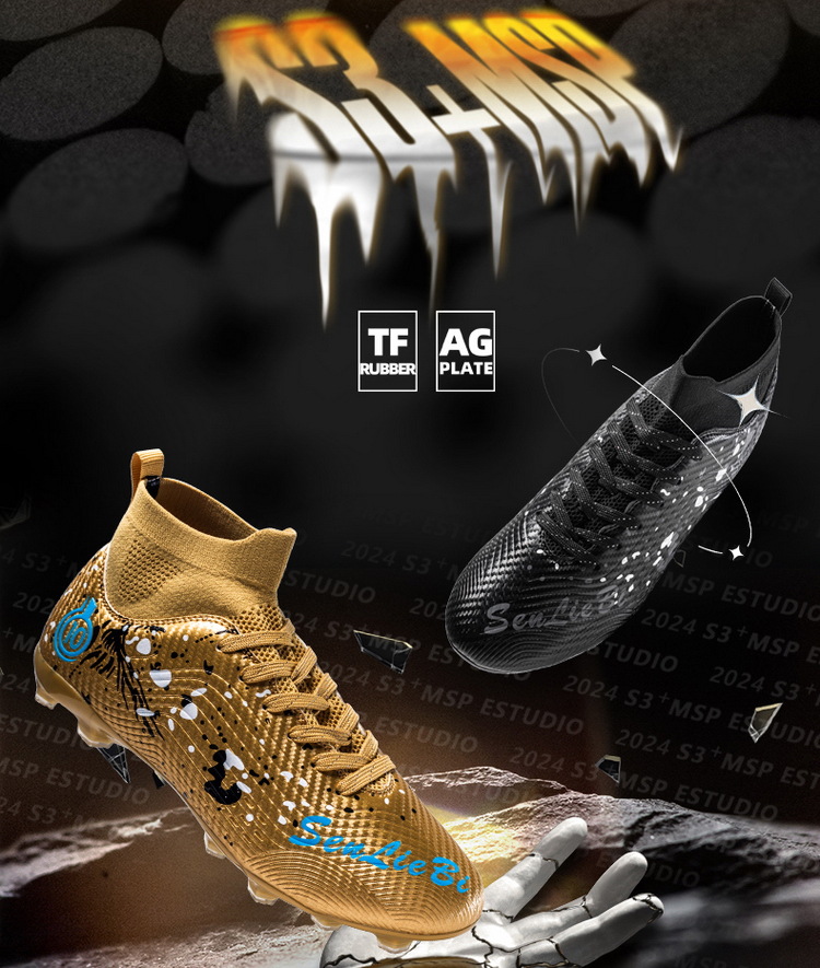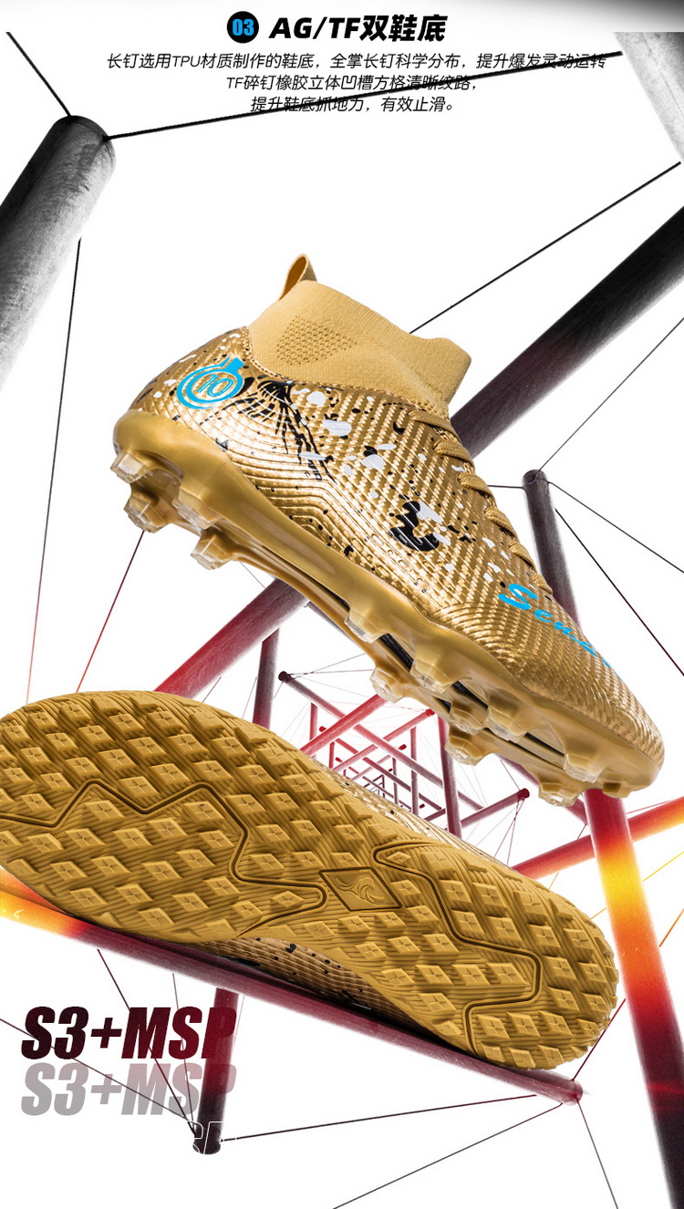 Transfronterizo zapatos de fútbol de uñas rotas de largo alto-Top Plus tamaño cómodo transpirable césped artificial suave absorción de choque moda hombres y mujeres de entrenamiento